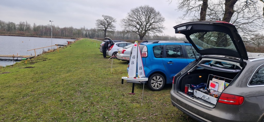 The weather conditions gave us an auspicious start to the day, with a very light wind and a temperature below -4 degrees which allowed ice to form around the edge of the lake. The wind increased and the rising sun rectified this situation however and allowed racing to start at the scheduled time. A course was set with a beat and run utilising most of the length of the South bank. Course length 2 ½ laps taking around ten minutes.
