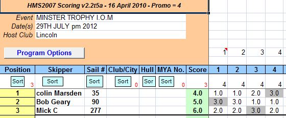 Ok Mick and Bob with the same points but Bob wins with more first places while Mick sailed a very conservative series , well done Bob