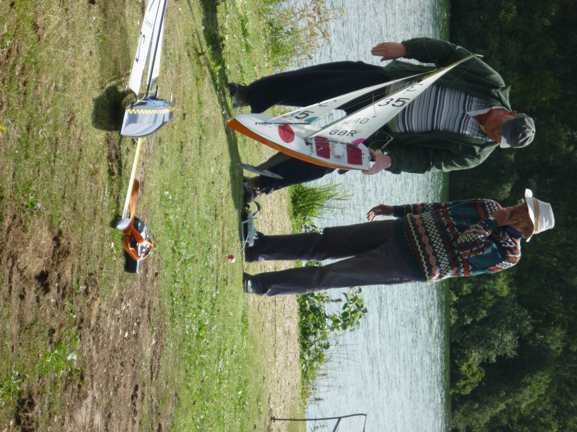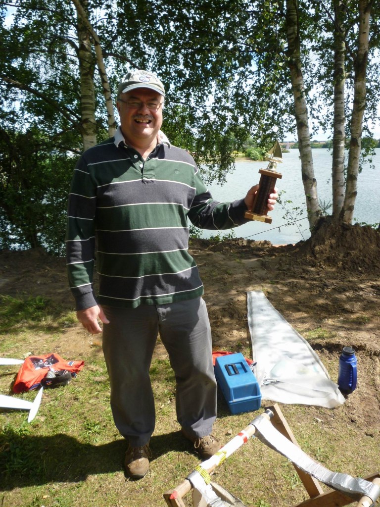 Three starters came to the line for the I.O.M Dellfield trophy in glorious conditions with sunshine ans a perfect south westerly around ten knots. we had a visitor who stayed the whole day and because he had not brought his own boat he took turns with our boats and competed in all races , Our old friend Martin Lambert ( less of the old ) came to see us on the eve of going into Nottingham hospital for surgery , It was a delight to see him as he has not been able to get up to the lake all season so far , He thoroughly enjoyed his day and so did we , honours were mixed and the racing close and when he took over his old boat from Bob and blasted away into the lead we could see the old magic was still there , He helped us all set our sails and gave some good advice and you could tell he had really missed it and cant wait to get back to it again . I spoke to Martin on Friday after he had had the operation and although a bit sore was in good spirits , He did say he wanted me to thank everybody for a great days sailing , he enjoyed it just as much as we did ,,,, so get well quick Martin we wish you speedy recovery and all the very best for the future , the results are posted below with some pictures of both events