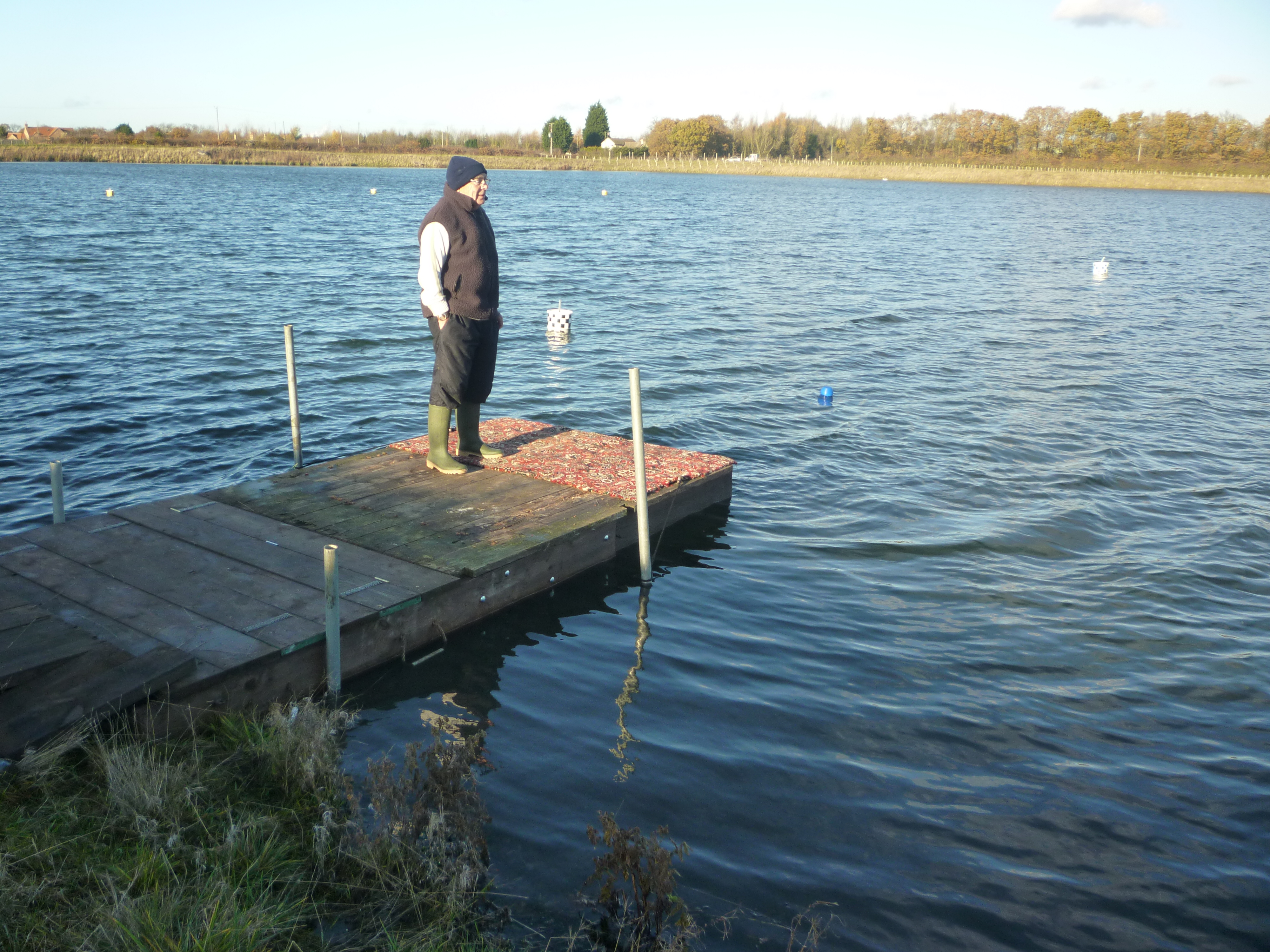 Hi everybody work has continued at the new (temporary lake) all the timbers to the floating jetty have been treated with a couple of coats of Cuprinol stuff, and finally yesterday amid glorious sunshine we launched the jetty and secured it in place. We were hoping to have the dingy on a retrieval system , that is far to top secret to be mentioned on here , but alas !!!! a mk 2 version is being worked on , As I speak it is blowing 90 miles per hour so hopefully the jetty will still be there for Sunday when it is forecast cold but fine and I look forward to as many smiling face as we can muster , flask and long john’s and thermals all round
