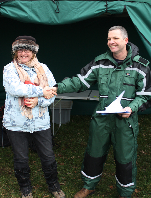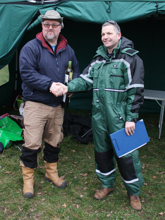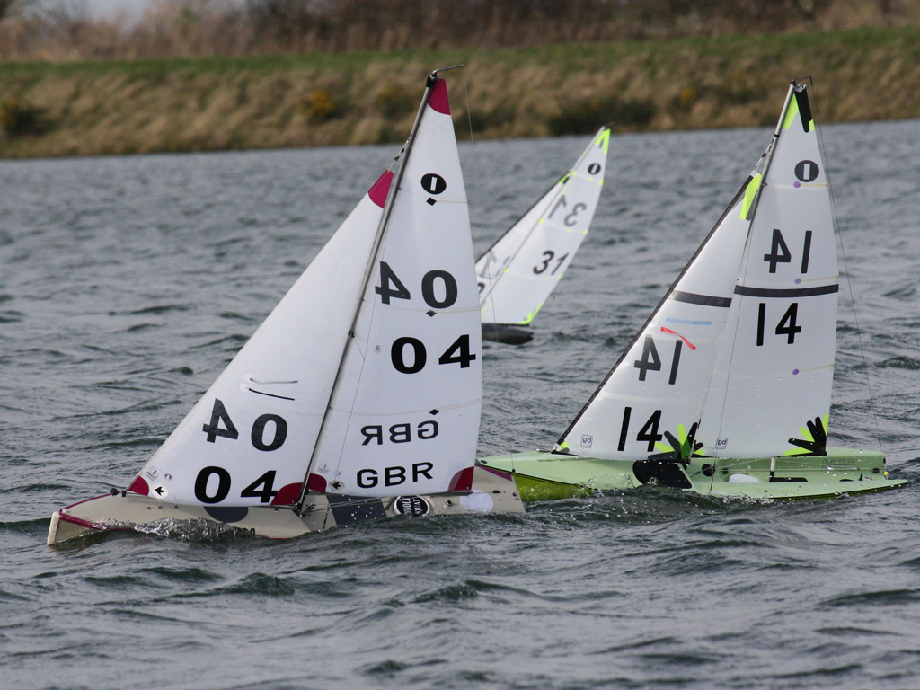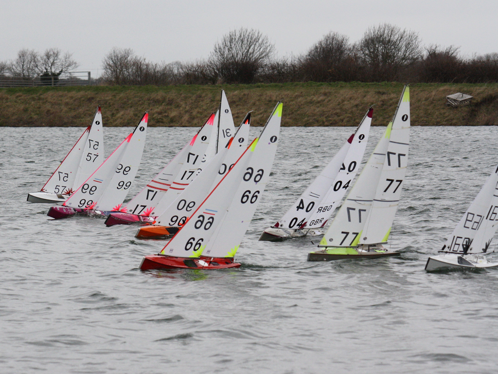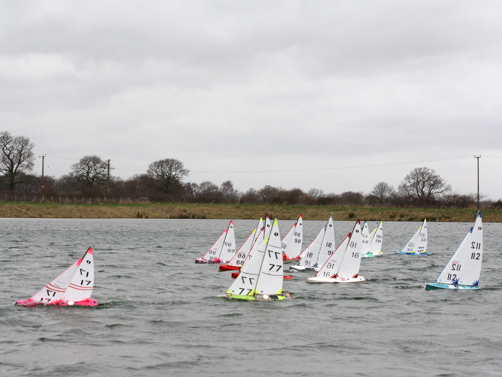 Sunday 23rd February dawned, the forecast was for 20 knots plus, cloudy with a small chance of rain as 25 skippers from as far away as Cornwall and Norwich descended on Scotland Farm for Lincoln Model Yacht Club’s first main event after severing ties with Hykeham Sailing Club. The lake is wide open and free from trees and buildings and it allows the race officer to set courses whatever the wind direction. The wind was southerly and gave a 180 metre beat and run. Rig choice played a big part with some very big gusts tearing down the lake. Some skippers went straight to C rig whilst others went up a size and put the B rig on, managing for the most part to handle the gusts. In the seeding races a V8 sailed by Dennis Payne and a Britpop sailed by Peter Sutton were both winners, and then the main event got started, and in the first three races Darin Ballington stamped his authority down with a first, second, and a third, with his shiny red Britpop. John Tushingham with his dark grey Departure was no slouch, being just one point behind at that stage, with Dave Burke and his blue Britpop keeping them both honest. Lincoln’s very own Martin Lambert sailing a very nice but quite old Lintel was having some bad luck with the marker buoys despite getting a third in the seeding race. Good form was also being shown by the Moster of Graham Whalley and the V8 of Dennis Payne. Also the old Gadget of Rob Wilson was showing some fine form. The next two races were taken by Darin, with John only managing a couple of thirds. Martin recovered well and got a second, his best result so far. It was all about consistency and being able to manage the gusts. Most people had decided that B rig was the best, but keeping it under control was not so easy with major wipe outs down wind being a regular occurrence. Race Officer, Chris Elliot kept the racing going with a short lunch break, and only one protest to deal with that took moments to resolve. The racing was excellent both to participate and to watch. Vinnie Zammit was sailing his new MX14, of which more are in build as I speak, and this could be a boat of the future. Peter Cropper sailed his Nemesis well, and am sure was happy with his 5th position overall. Seven different designed boats in the top ten proves that I.O.M. racing is hugely competitive and exciting. In the end it all came down to the last race of the day with both Darin and John fighting it out. Darin got the first place he needed to take the event from John, with Dave in third place. The Ladies also had a great day with newcomers Tracy and Jen improving as the day went on, but in the end it was Liz who took home the chocolates, sailing her departure into 14th place overall. Many thanks to everybody who competed and for the courteous behaviour shown by all. I should mention that half way through the event Dave Hollum dived very close to the bank and was lucky not to roll in. Once he had recovered he was told “that kind of behaviour would not be tolerated and to keep it for the football field” Dave apologised and promised it would not happen again.
