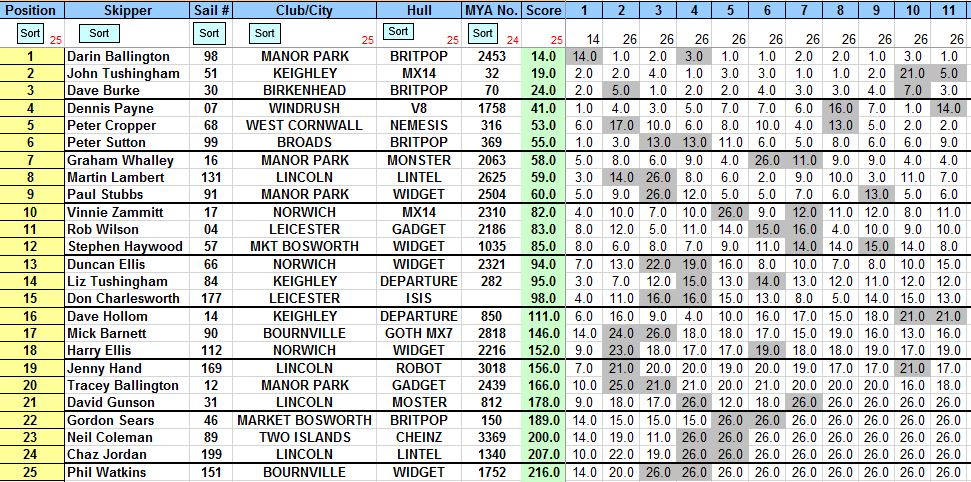 APOLAGIES John Tushingham was quoted in the report and the final results as sailing an MX14, he was in fact sailing a Dave Hollom designed Departure apolagies to whom they may concern