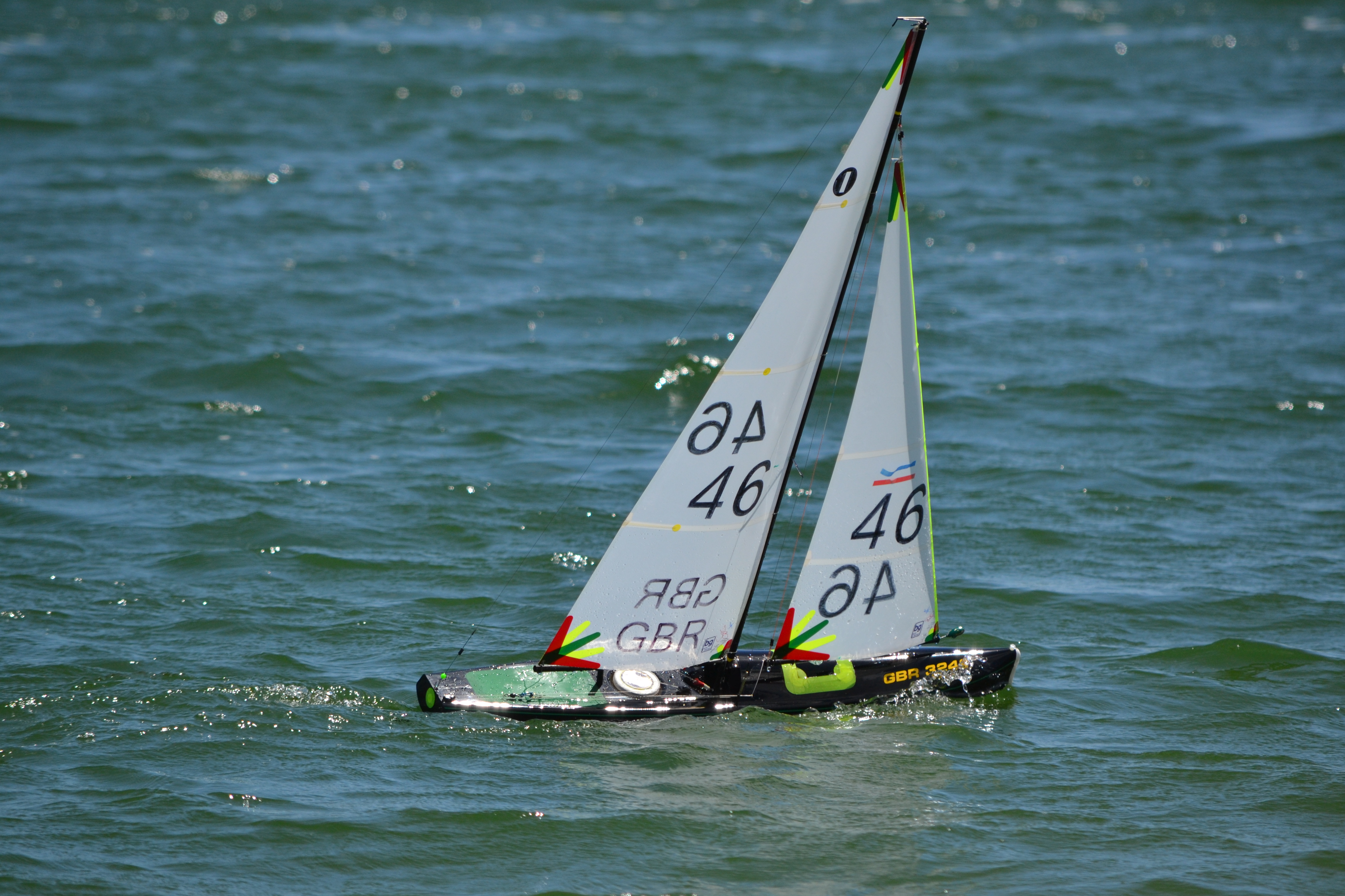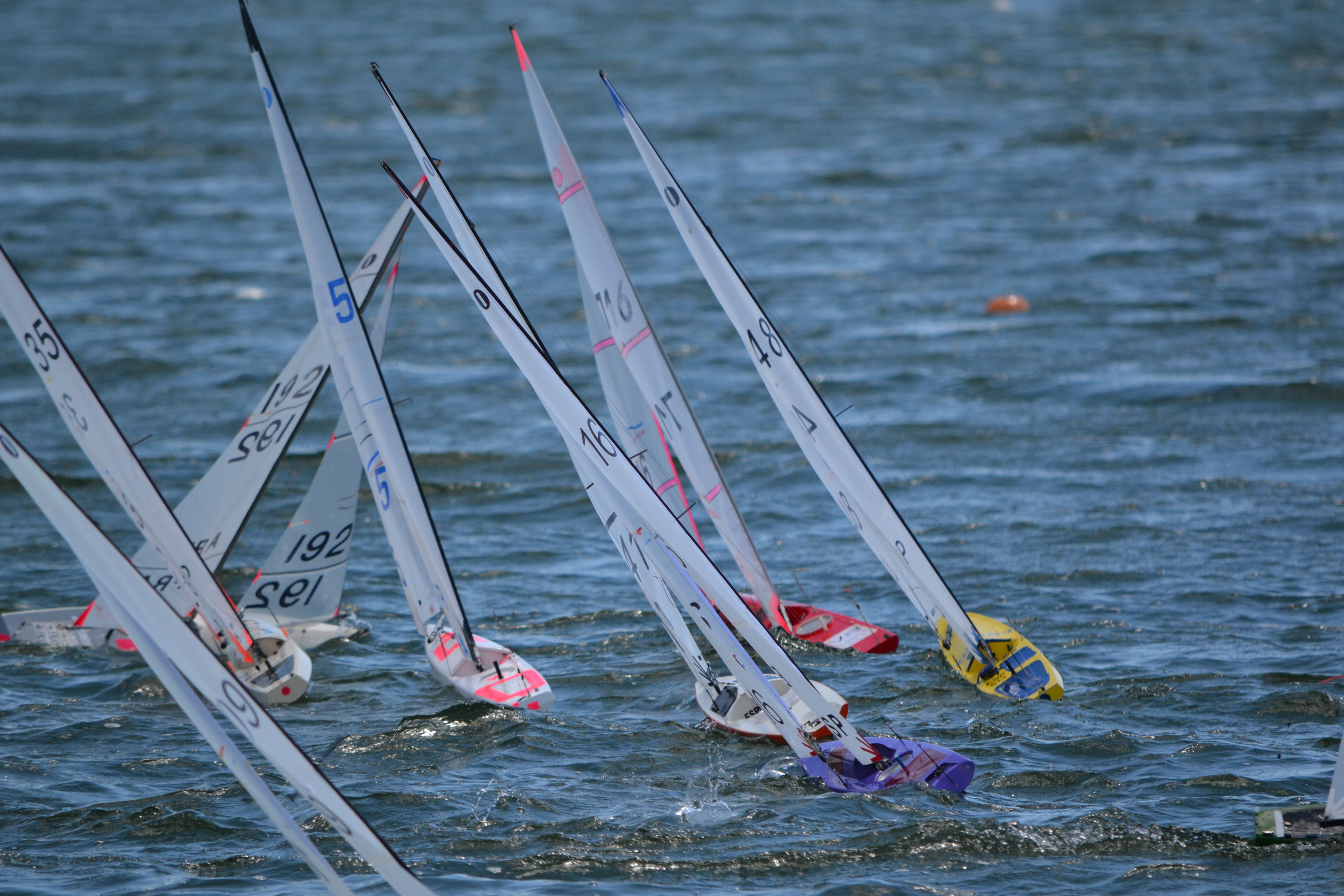 Saturday starts were scheduled for 1130 am , but because of some problems with kayaks on the water and a very bad collision between a I.O.M and a kayak racing did not get under way until 12 45 , and started with c fleet, the breeze was a full top suit breeze from the south west and all fleets got away ok , there seemed to be quite a hold up around 3pm , quite why we do not know but one and a half hours sailing was lost. Graham Bantock and Ken Binks kept the Brits hopes alive with some good results with Graham ending the day in second position. Mick chamberlain managed to stay with A fleet until the last race when he went down to B ending the day in 13th, Derek Priestly had a nightmare of a day and remained in B all day which was disappointing as he was lying third when he was demoted , John Cleave started the day well with two second places but then had some mediocre results that left him in 9th place at the end of day two , Nigel Brown had a very up and down day and ended the day in 21st place,