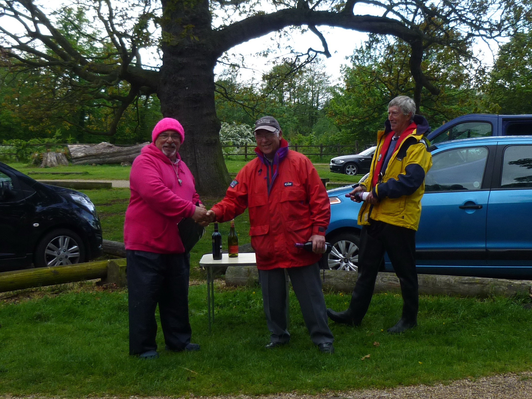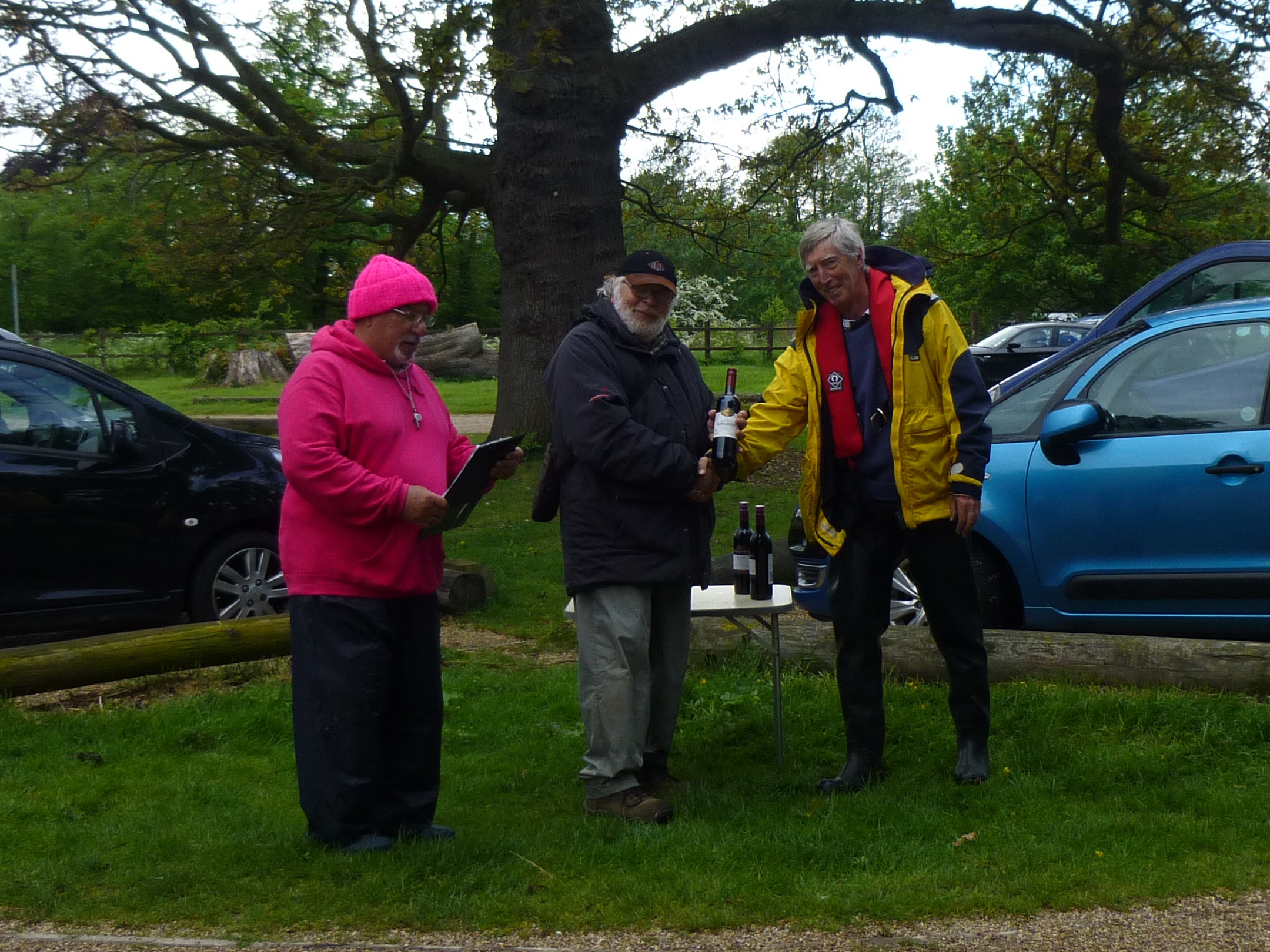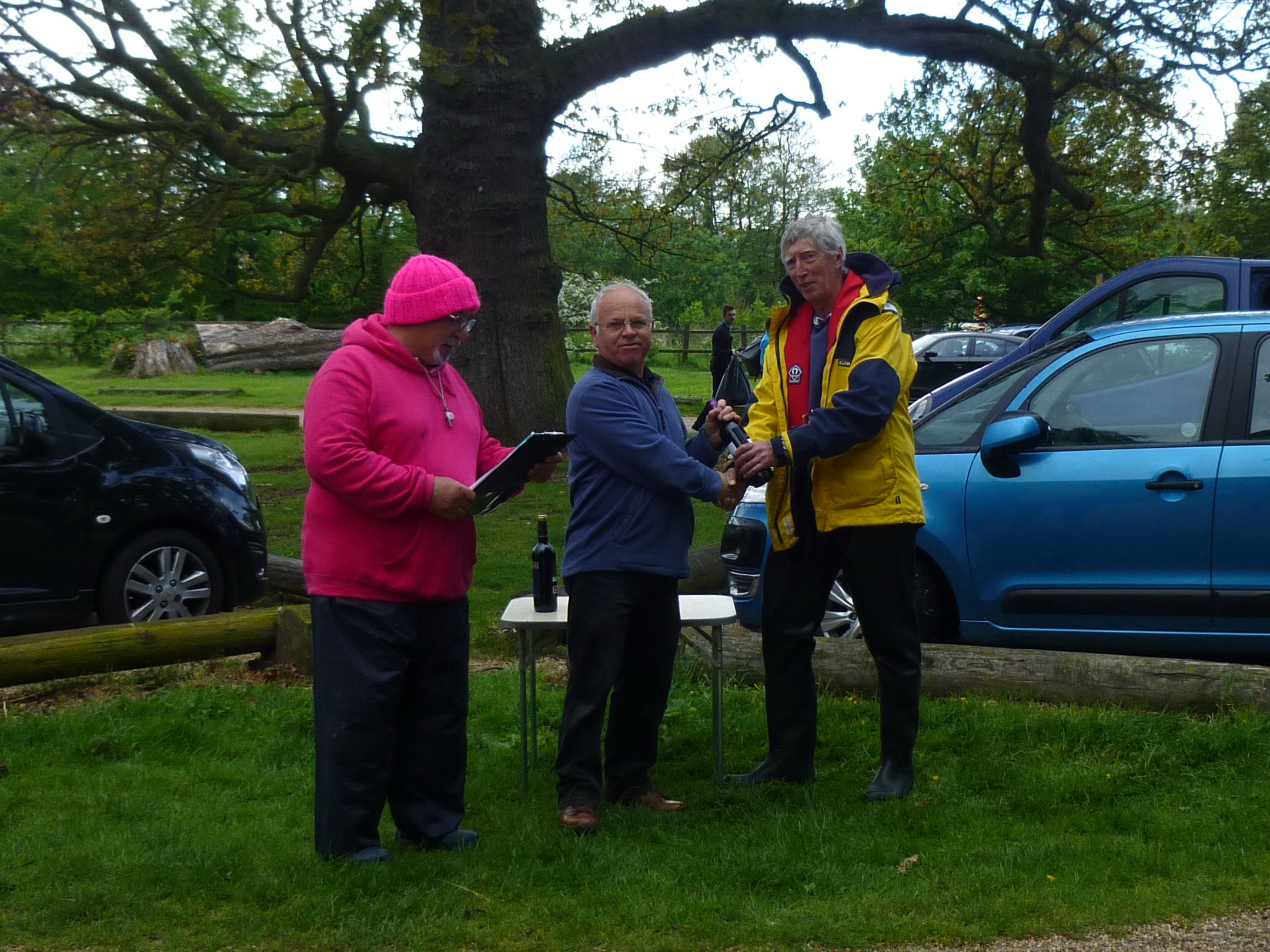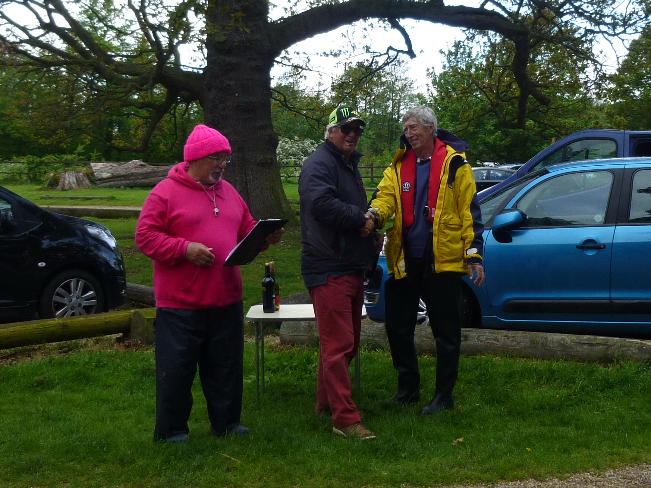 Results above , and a great many thanks to all the race team and of course the competitors , some who travelled a long way , and some who just don’t look 60 years old ( must check birth certs as well as boat certs ) just joking , below are one or two pictures of the prize giving , only a madman would have got his camera out in all that rain .