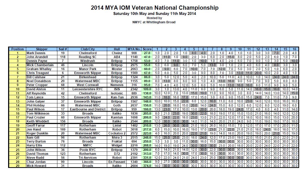The 2014 Championships were held just outside Norwich in a little village called Trowse , hosted by Vinnie and the lads of Norwich Model Yacht club, The weather hosted its usual tricks and we were treated to some good winds with a healthy dollop of rain on both days , the race course was fluky on the first day Saturday and I would say not so fluky on the Sunday , Early leader Mark Dennis was never really in trouble winning the event with last years winner coming home in second place , Dennis Payne sailed his pants of on both days with some great results to gain a third place.
