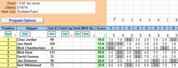 FUN RACES FOR I.O.M are as follows Well done Chaz and Jen Hope you both do well next Sunday
