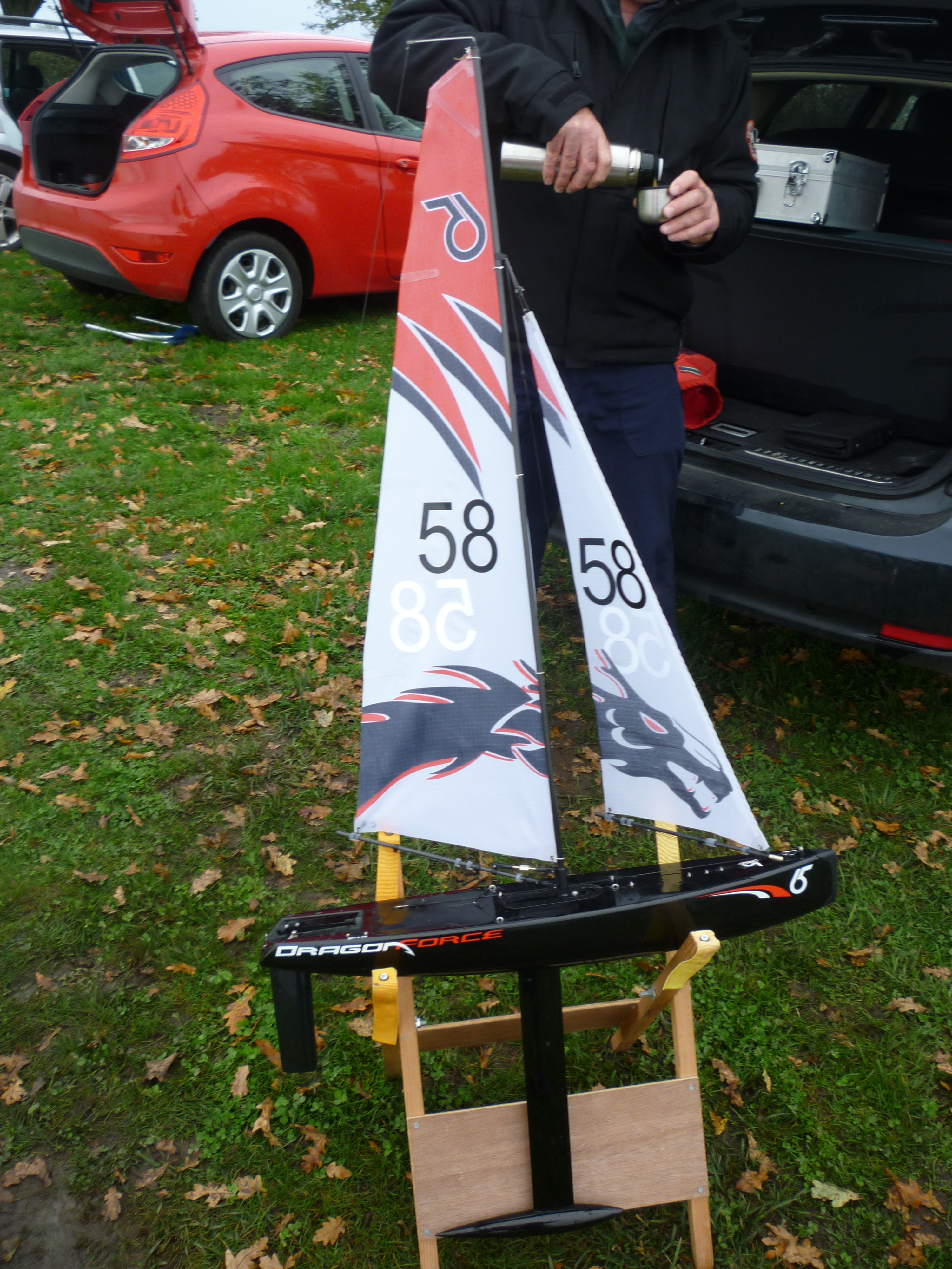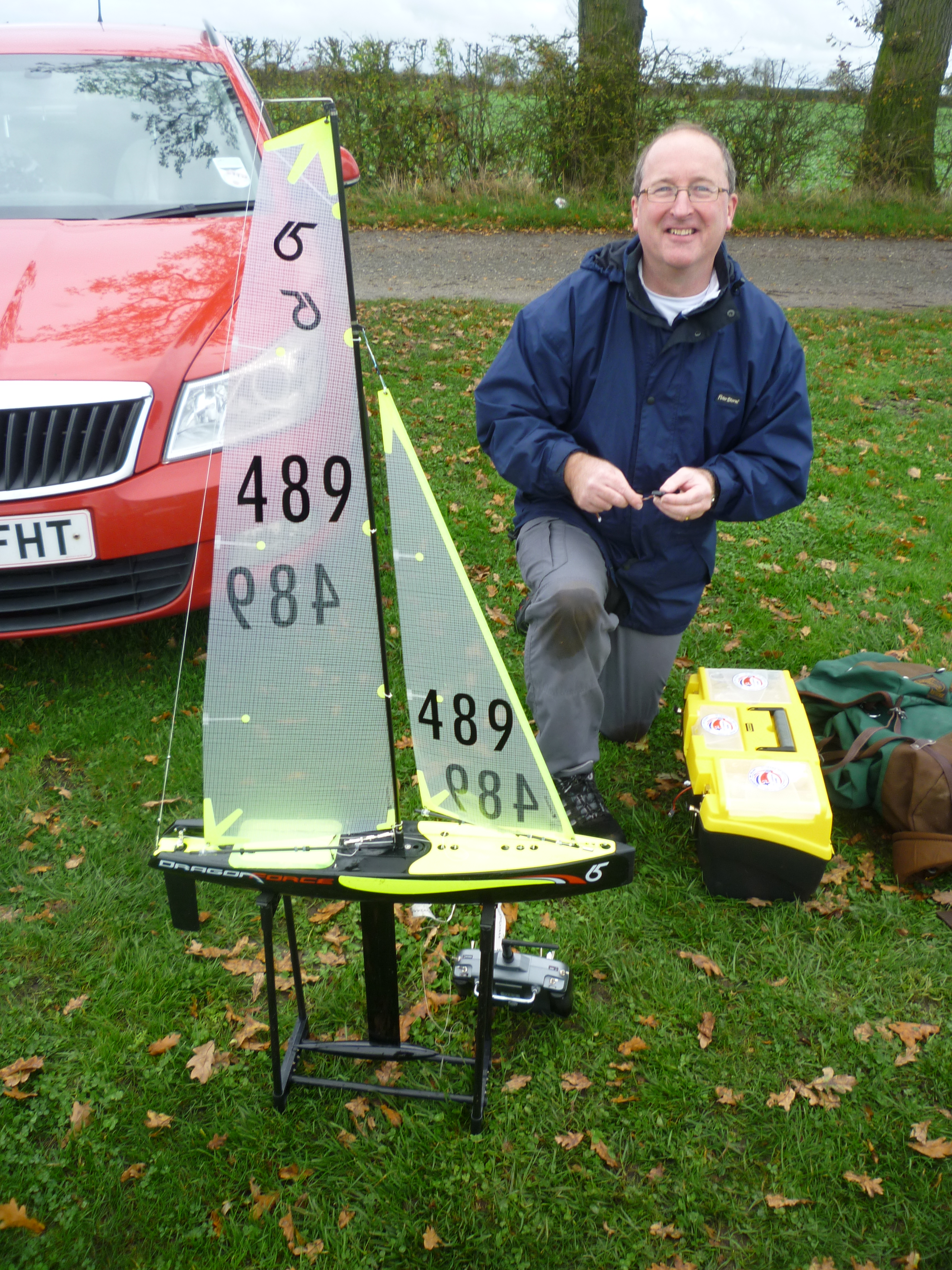 At 0900 hrs 8 of the competitors arrived at Scotland Farm in pouring rain and very little wind , However by 0950hrs 13 competitors were ready for the briefing the rain had stopped and and a steady southerly breeze had filled in to give us some very exciting races. New member Chris Corrin was trying out his Dragon force for the first time and had some teething problems with range on his Spectrum set-up eventually going back to the original kit that came with the boat. Bert Whitehead also sailing the Dragon for the almost first time sailed well and only finished two points behind Alan Newman. Gordon Bennett’s new Dragon is white all over and he was well pleased with his performance. The winner in the end was Phil H with a string of fine results which must give him confidence for the future. Martin Lambert secured 2nd position and was the summer series winner by quite a large margin , which with his wins in the R.M and the I.O.M makes him the man to beat in the winter series , which by the way starts in earnest next Sunday the 9th November results are below , but before I leave you, I would like to express all our thanks to Seymour for sitting back and doing the scoring for us today , It does underline the spirit in the club where people are happy to give up a morning and do something other than sail at the club.