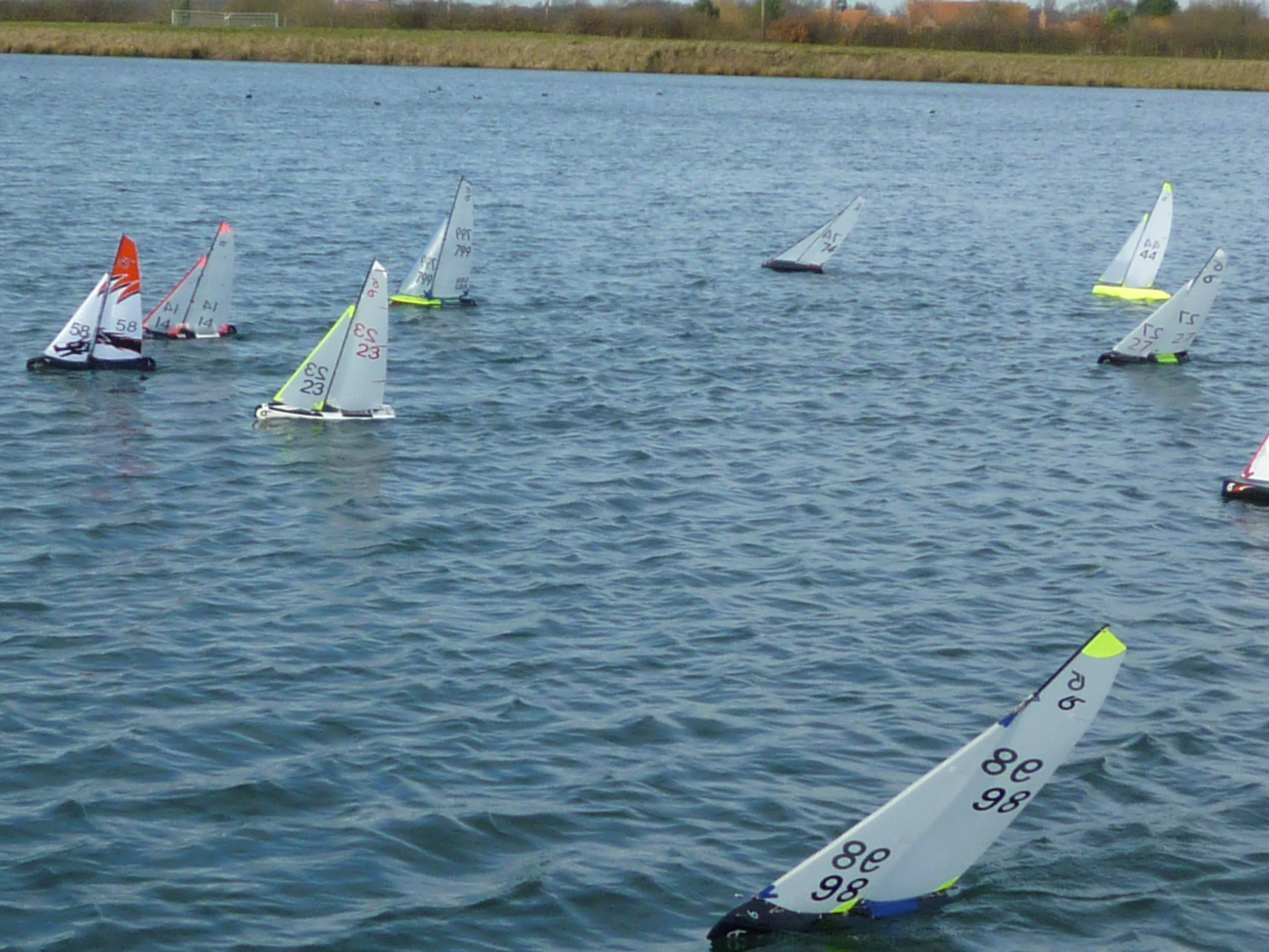 Eleven Competitors came the line , with sunshine and a steady top suit breeze for round four of the Dragon winter series , It was cold dont get me wrong, but as long as you had your thermals in place , you had a smile on your face. first casualty before hitting the water was the lip, Mick gbr 46 always banging on about be sure your boat is ready for racing to everybody else, apparently no juice to the winch, say no more , he kindly did the scoring. 12 races were sailed from the East bank and first Bullitt of the day went to Bob gbr 58 and as time went on his consistency paid off as he was rarely out of the top three. Phil gbr 44 was sailing his yellow peril RG 65 and did well to top the order at the finish , although the RG’s are a separate class in this series, Chris gbr 74 with his new hull after the sinking three weeks ago was not quite doing enough to boss the morning and only started to come good towards the end, Ivan gbr 47 had some bad luck with his kicker snapping so had to sail with B rig, Mick gbr 14 was going well and proving his success with the I.O.M is no fluke, It was nice to see Norman , Gordon and Bert having some close races, Chaz retired after race 6 with radio problems and left for an early lunch , racing was exciting and fun to watch. and the eventual winner was of course Bob gbr58 with Phil getting line honours ,