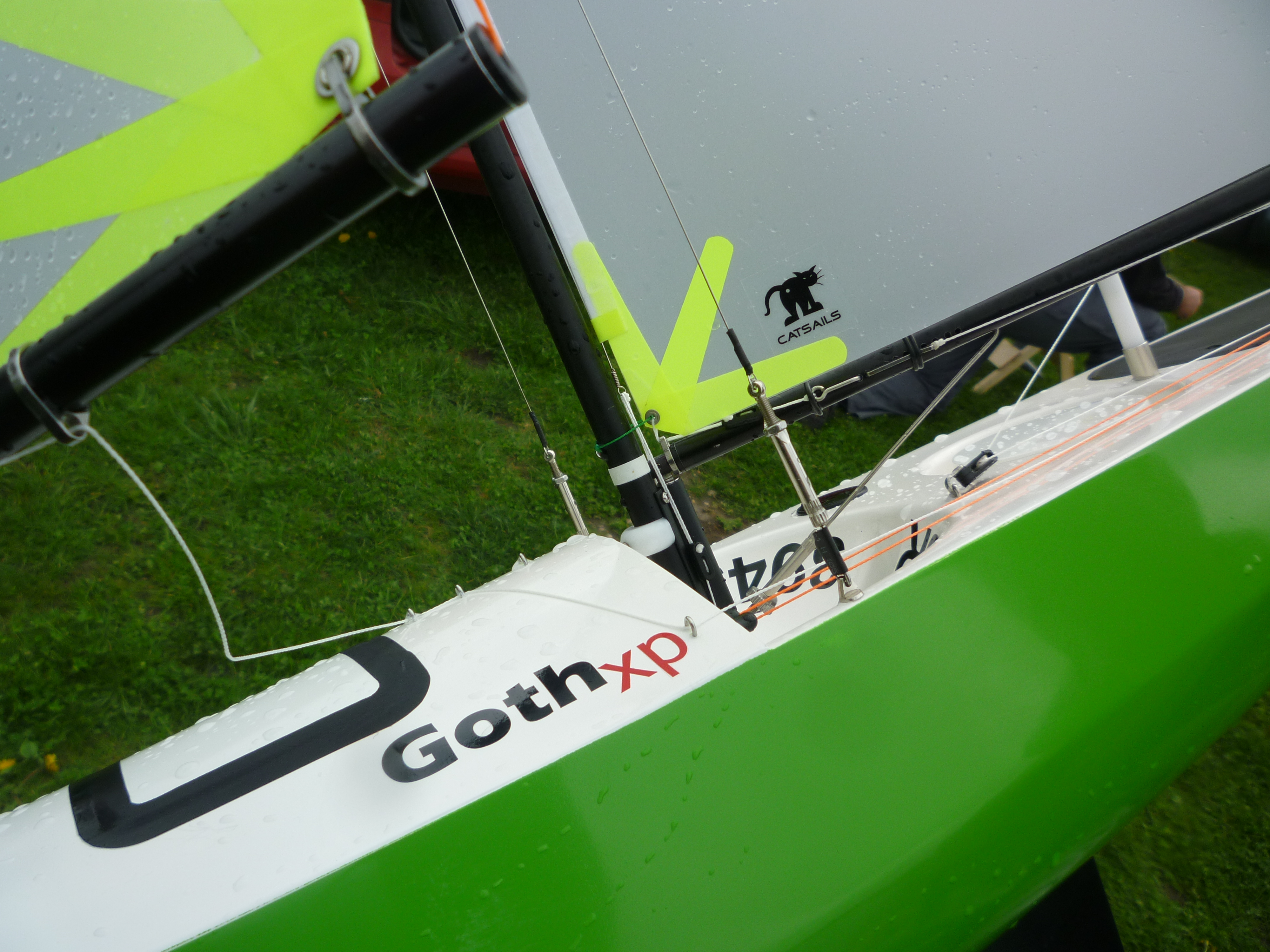 Phil Harpham has worked tirelessly to build his Goth XP from scratch and finally the boat was ready for its first sail sporting a new set of sails from CAT SAILS and the boat looking great in its green and white livery , the boat after one or two teething problems with the winch, sailed above all expectations and Phil can be very proud of his achievements.