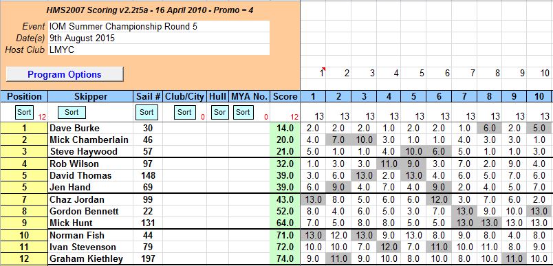 Another fantastic day at Scotland farm saw 12 contestants including one visitor, Stephan Haywood showing off his brand new Britpop and getting some great results even though not fully tuned. Jen Hand was race officer for the day and did a grand job keeping everybody in order and very happy with the 2 lap course which was sailed from the East bank with a full top suit breeze from the South West. conditions were warm and sunny and the sailing and racing were some of the best we have seen at the lake this year.A number of boats had wins and some very close seconds but at the end of the day it was Dave Burke who won through to take the win on the day. 10 races were sailed in the allotted 3 hours.