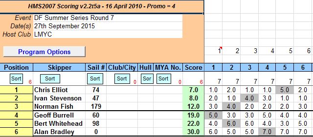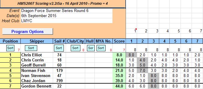 Results for these two races are attached. Both races were sailed under Dragon Force conditions i.e. light and flukey winds.
