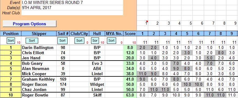 The usual suspects garnered mostly the first three places, But for once this was not all about the superstars, the racing here was about Mr ordinary ( no disrespect ) Forget about B/P’s and V9’s ad flash boats coting a few bob , this was about Evos the AB4’s and the Lintels, with odd gadget thrown in and Young Roger Bowtle with his skiff like racer, that’s where the battles were won and lost. The near perfect conditions made for some real battles between these guys and if I picked out a stand out star, well they all were. Just look at the results and see for yourself, If you had been there you would have loved it . I took a few pictures on the day and will try and get them uploaded as soon as possible. Many thanks to the OOD’s and also many thanks to ED and Allan who came along to do the finishing line.
