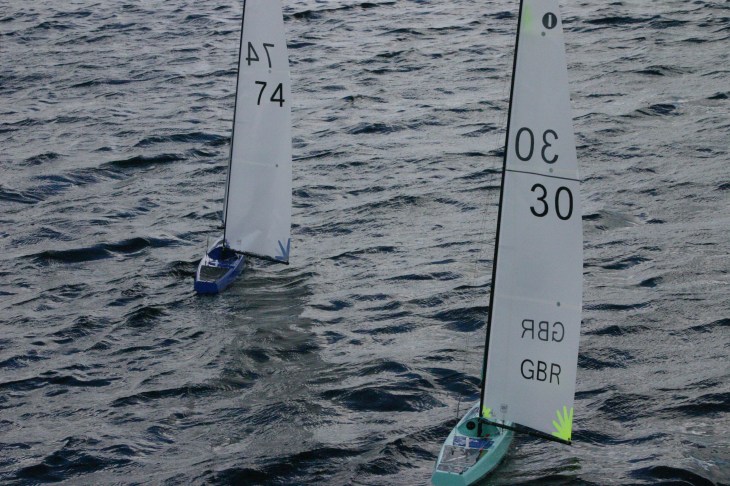 A great summers morning at Scotland farm, sunshine and a good breeze and Chris GBR 74 was on fire in the challenging wind conditions from the North East, and did in fact go on to win, so well done . The breeze increased through the morning and by noon it was right at the top end of A suit, very gusty and shifty, Course laying was difficult, and it was always going to be one sided wich ever bank you played on, Mick Copper and Chris graves drew on their years of experience to give us all the best options and we managed to get 13 races in before Time was called at 4 minutes to one. Only eight skippers but it was a bank holiday so family comes first, well at least thats what they tell me,