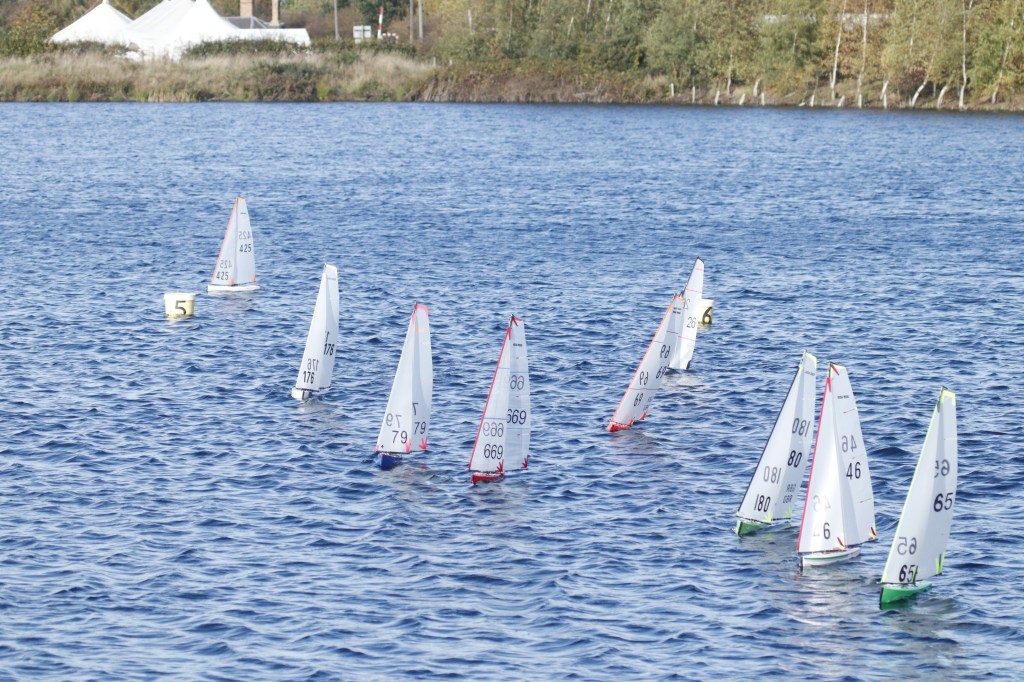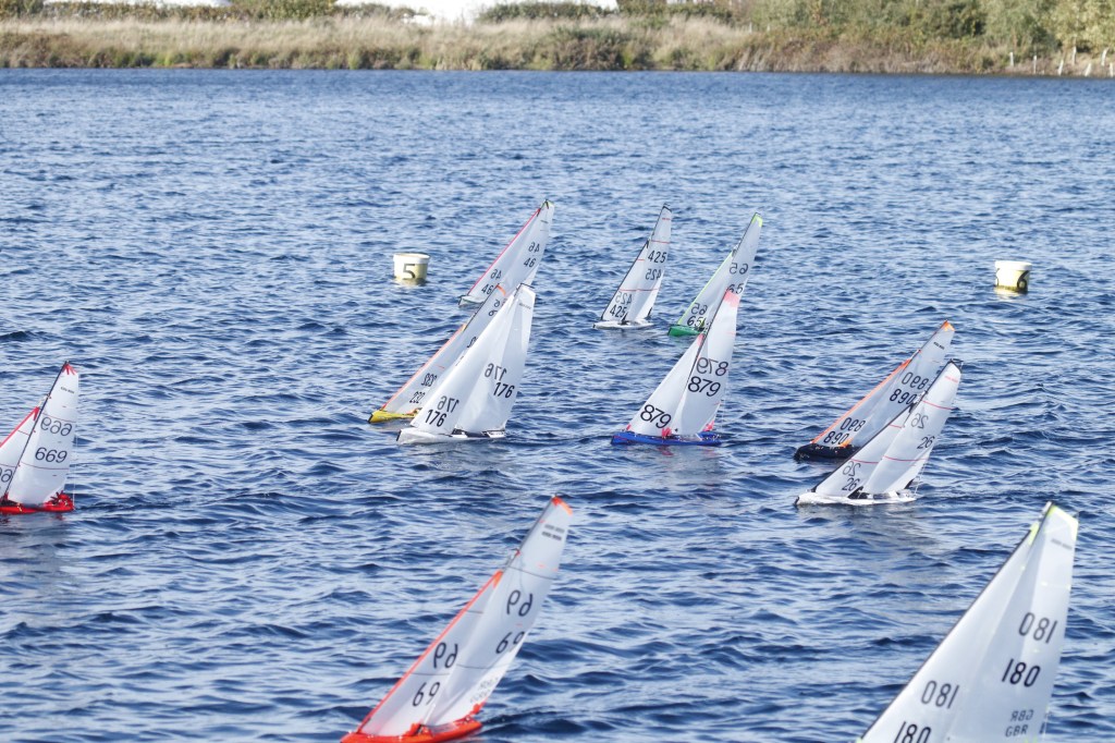 for the 13 skippers who turned out for heat one of the DF 65 series. A beautiful sunny day, South Westerly around 12/14 knots straight down the lake. You did need to wrap up warm, all racing marks checked and repositioned, to give a long windward / leeward course on the East bank, Mick Cooper got the briefing underway sharp at 0950.