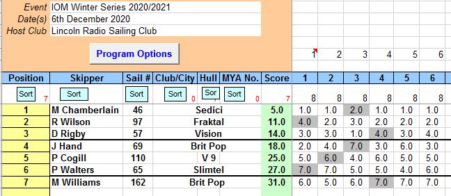 9 skippers decided to stretch their legs and get some exercise, 7 actually raced one came and went and we welcomed a potential new member , Welcome Tim Cripps , Well the sun shone it was not too cold and there was a zephyr or two to get us round the course and we all had a nice chit chat, coffee and a mince pie. So to the racing ,, well it was steady, the first three races we sailed on the East bank had coffee and sailed on the South bank, Mike Williams had his new brit pop to try out , and Tim had brought along a DF 95 to have a go with, it was all very pleasant. The results you can see below , The other Highlight was Geoff Streeter won that thingy that we do on a Saturday night each month, so well done Geoff. Another member tried out some drone footage sorry cant post on here right now ,,, bit of a typo on the results , it is I.O.M “not the winter series round 4 ” I think”