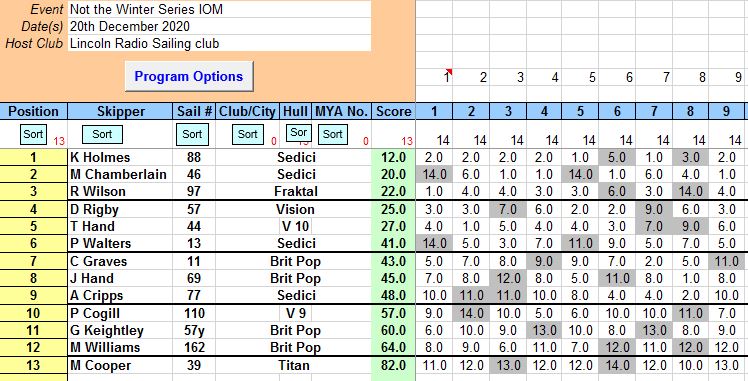 conservative sailing , Chris G gbr 11 taking 2nd place and Rob with 3rd, Tim