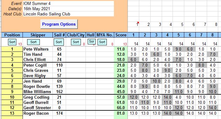 Well done to the race team and all helpers especially Roger B , and thanks to all skippers for making it a pleasant morning Great to see Roger Bacon back racing.
