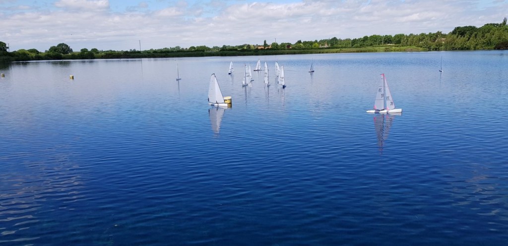 The top three ,, it was very close with Pete W 678 taking the win on the day, Jen H and Dave G was decided on countback as you can see. A great mornings racing at the club with probably a record number of entries for the DF 95’s and long may it continue. Many thanks to Roger Bowtle who fixed the ride on for us ( Mower) before sailing and of course all the helpers who made the day enjoyable.