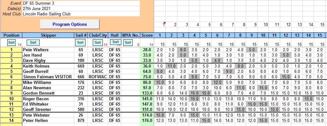 Mick says , the racing is very close looking at the results pete won two of the races but Jen won 5 so consistancy won the day, We must remember that in a series of 14 or so races you don not have to win them all !!!!! Nice to see Simon from Rofwac I am sure he enjoyed his day and good to see Geoff Burrell starting to knock on the door, I do agree we perhaps need to chat about the times for the racing and try and sort so people do not depart early. Great turnout dont miss the next round on the 25th July .