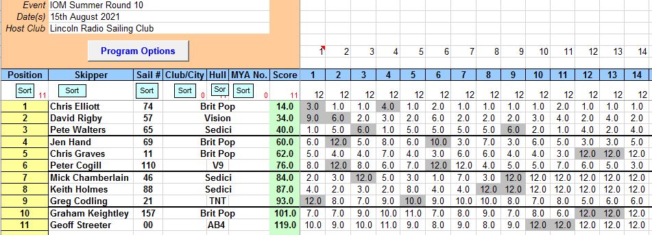 Very well done to Chris E , 14 points from 14 races cant be too bad. Dave R a good result to put into the accumilative results