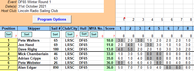 Well done the race team who for the first time scored the finishing from the protection of the club house to keep scoresheet dry, and every body who got the show on the road , congrats to Pete for winning round one and I am sure he will face tough competition in future rounds of this exciting class.