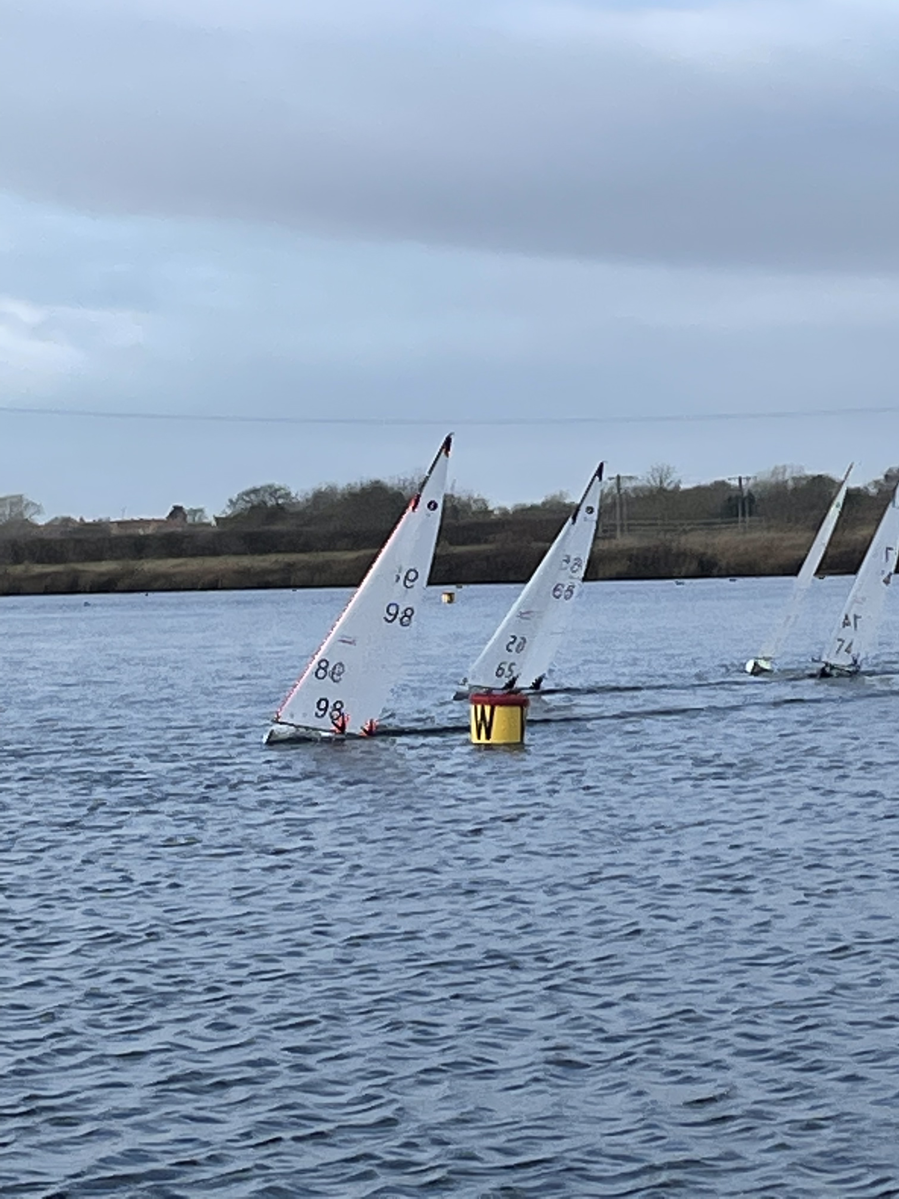 A 2nd weekend of Mick Chamberlain missing a great morning’s racing, Many thanks Covid 19 ,16 skippers turned up on a glorious Sunday Morning a fresh breeze from the Northern sector enabled Tim Hand and mum Jen to set a course on the East bank . Tim H 44 set the early pace getting good results in the first three races ,The usual suspects were pushing the front with Chris E 74 getting good results including a bullet in race three, but Darin B 98 then came into his own with three wins on the trot, however the standard of racing is getting to a point where if you don’t get the first beat and start right, you are not coming through the fleet as you once were. Several commented on the past where back markers were being lapped, no more, all the fleet were on the final beat as the first boats finished, so big improvements all round .