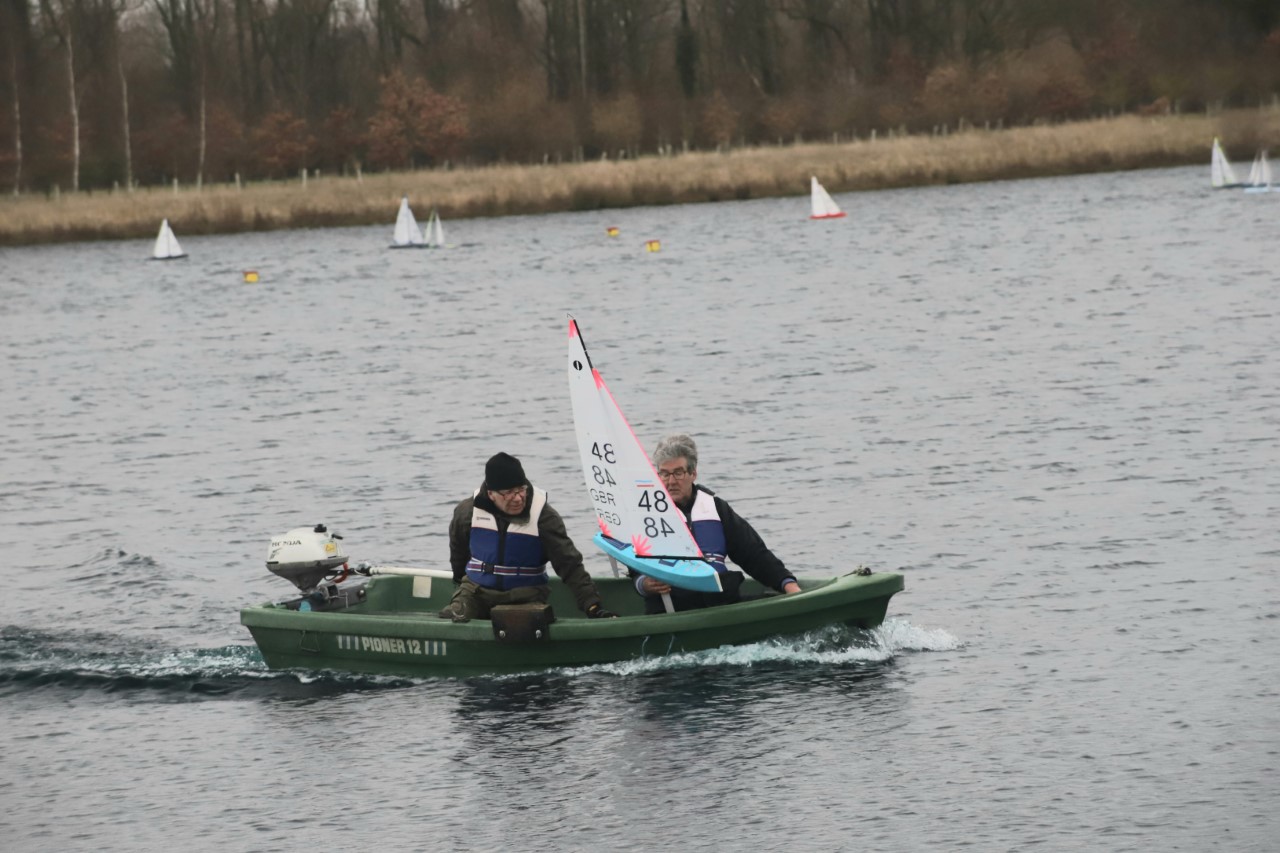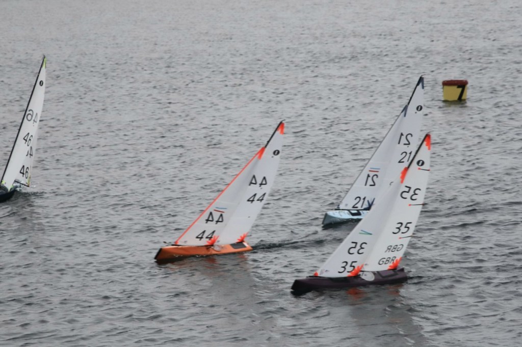 Darin had come up with a good suggestion before the first race in so much as he thought that it would be a good idea to have the boat crew on the water near the start line ready to move the line should it need a little more bias. The rescue boat was stationed up at the top of the lake initially and it would have taken some time to get back to the start area, this option of being on the water greatly reduces the possible wasted time in resetting the line.