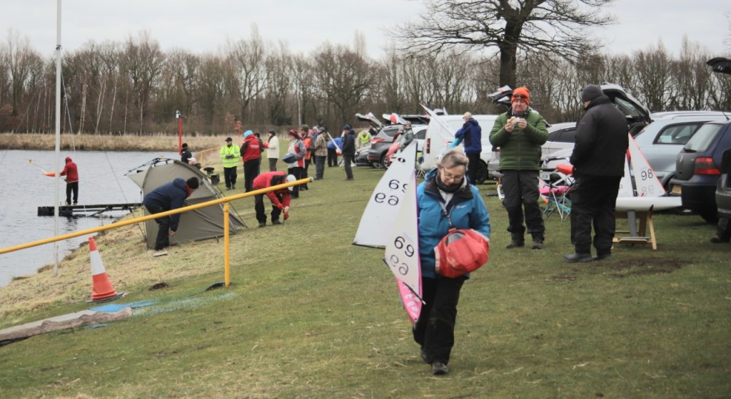 At booking in all skippers were offered a bacon butty and a brew to get them going. Once I had said my hello’s to the race committee, I was introduced to the PRO for the day Dave Geldard, we went over the basics of running a two heat race and details of the intended race course. The heat board was duly updated, and the course board drawn out. This was going on as the skippers were preparing their boats and rigging their second suit, the gusts towards the bottom of the lake were definitely too strong for anything bigger and to remain in control.