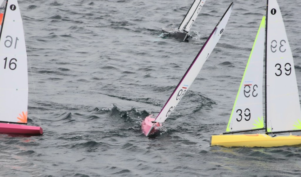 Racing commenced on time, but the start was delayed slightly as two boats had become entangled during the pre-start and they needed the services of the rescue boat, by the time the boat got to them they were well down wind and away from the course, so the race was started without them. It was then that Chris Harris started to make a push for the event win with first places in both race 4 and race 5. This was also the time where Chris Cook had to retire with a boat that needed a little work.
