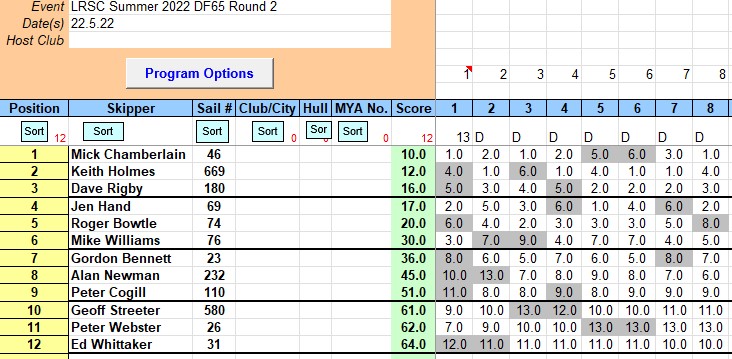 12 skippers turned up OOD Mick C 46 explained the finishing process, and the new Windex Mod designed and modded by two top skippers at the club to help skippers lay a decent start line, and then we were racing. Mick C 46 took the first bullet, with the orange fast machine of Jen H 69 getting second place and Mike W 76 getting a well deserved third.