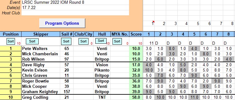 Hot as a chilli pepper, was how you may describe it today, But 10 skippers showed armed with different types of lotion and wide brimmed hats, It could have been 11 but Pete H 60 his winch packed up before racing started ,,, You will forgive me for saying it was fantastic racing but it was.