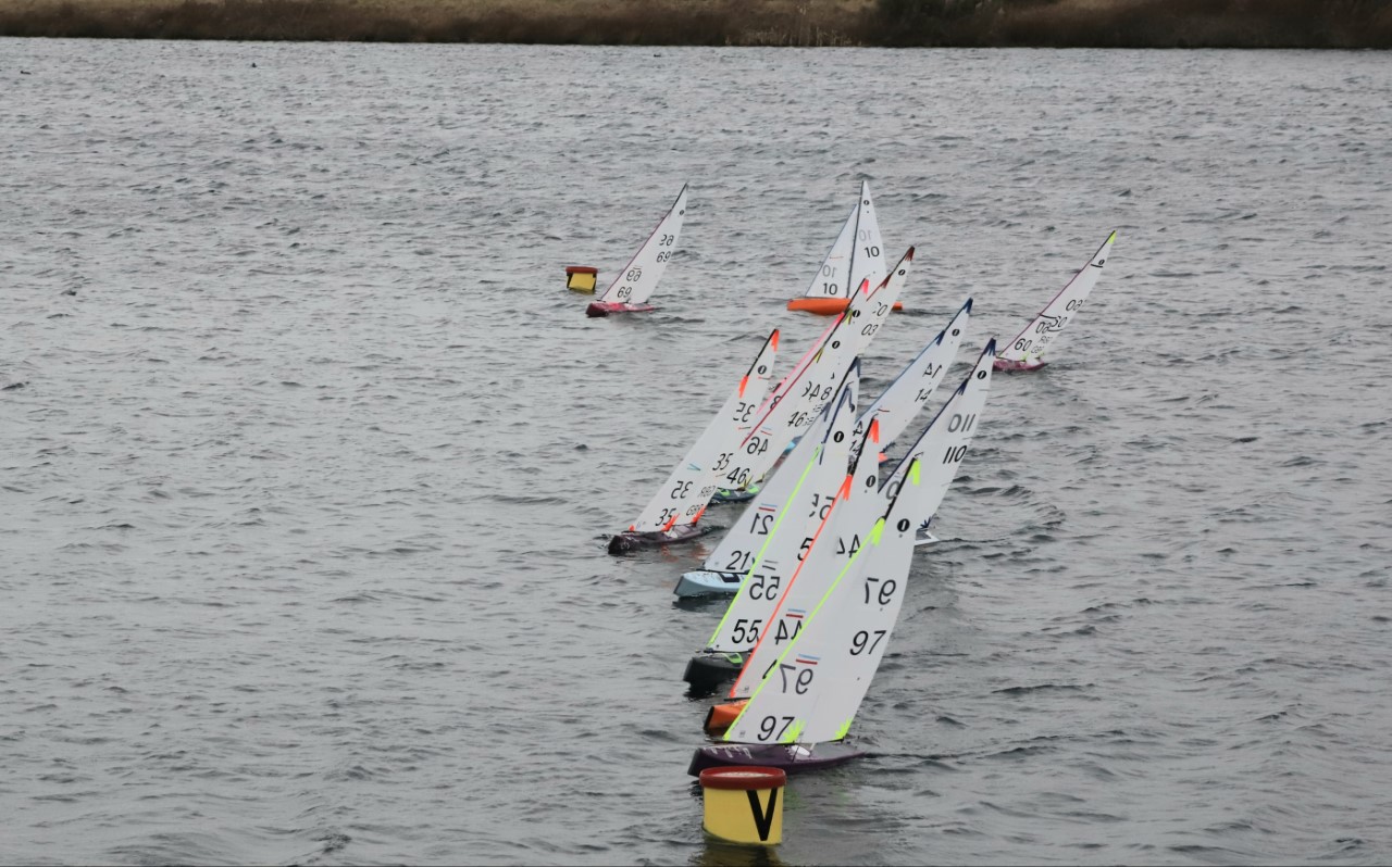 As you can see by the score sheet the club has some great designs, and with a decent top suit breeze,, not a lot of notice was taken in the first few races, but young Darin B was not just knocking on the door, Tim H won the first two races and Pete W got the third, The fourth was won by Darin B , with a few minor adjustment to rig and tune between races , we then had a coffee break, we also moved to the East bank, which was decided to be best of the two evils ( we were later to move back to the South and extend racing by half an hour due to the disruption.) all agreed !! Well after coffee, a lesson in racing, and tactics for those who had the time to look was surely on the table as Darin went on to win the following 4 races without reply, now it would be unfair not to mention the other 10 skippers up and down the fleet who all tried their very best to get the best from their boats, one skipper was trying a total new rig , and also the last few races were all sailed in bright sunshine and just about perfect conditions