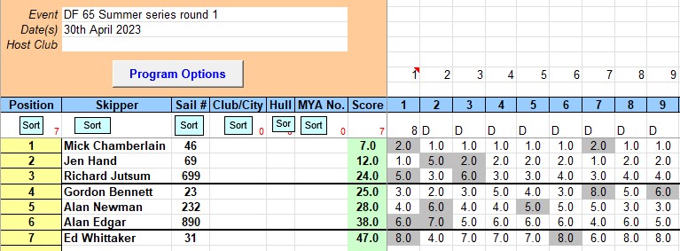 As Mick would say another great day at Lincoln , Seriously it was a lovely day The breeze was straight down the East bank enabling A plus rigs to be used . Only 7 skippers out to play but it was very good racing throughout the fleet, Colin Toll who was assistant OOD has not yet had a chance to put his 65 together and did all the scoring on the day, Myself and Colin arrived early to get all the OOD stuff out and ready, and when Mick C arrived he went out in the boat and moved a couple of buoys so we had a great course, thank you, I Jen H 69 was quick of the mark but struggle to keep up with Mick C 46 but on the last leg managed to get in front and take the first win, Gordon B 23 took the third spot . From then on it was Mick Mick Mick and more Mick C 46 as we just could not live with his speed and superb boat handling skills , and he went on to win the next 5 races. It was great racing up and down the fleet and at Coffee we insisted that we check out his settings, and so we again set of I ,, Jen H 69 won race 7 and was mighty pleased , Richard J 699 fresh from his experience at Eastbourne was doing very well and just managed to pip Gordon B 23 by one point, Ed had to pack up with Battery problems towards the end and the Two Alans were quite close at the end.