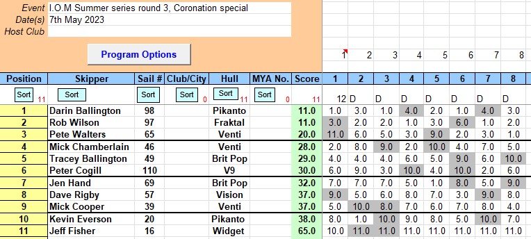 It really was a lovely morning, and everybody had fun , it was always going t be a battle with Rob and Darin and Darin just took the morning on countback , Jen and Dave were not sailing as well as usual, but I am sure we all went home happy.