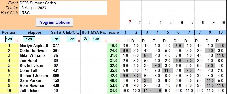 Congratulations to Martyn for a very solid overall win, and thanks to Mike for organising a great day and to the skippers for getting the stowing away done in short order.
