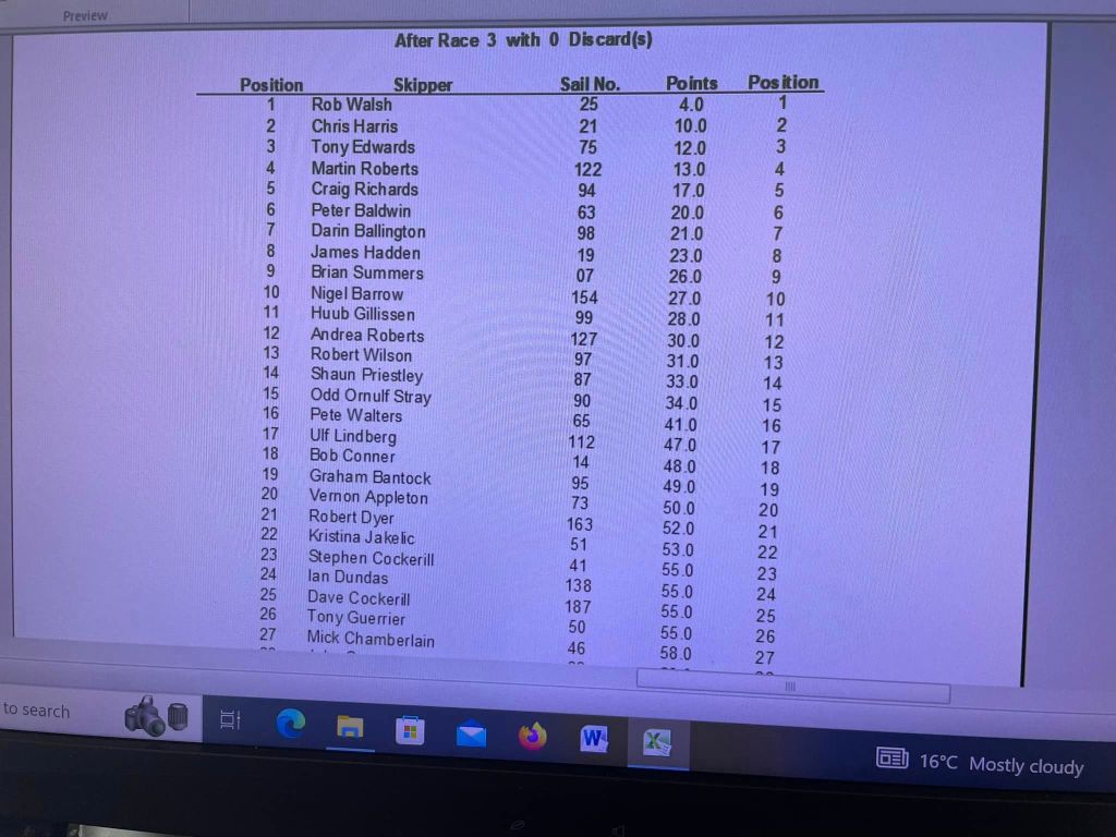 A light north easterly breeze greeted the 62 strong fleet for the first day of this event. The race team made good use of the available water setting a long course. The format for racing was a 4 fleet system with 6 places up for promotion and relegation.