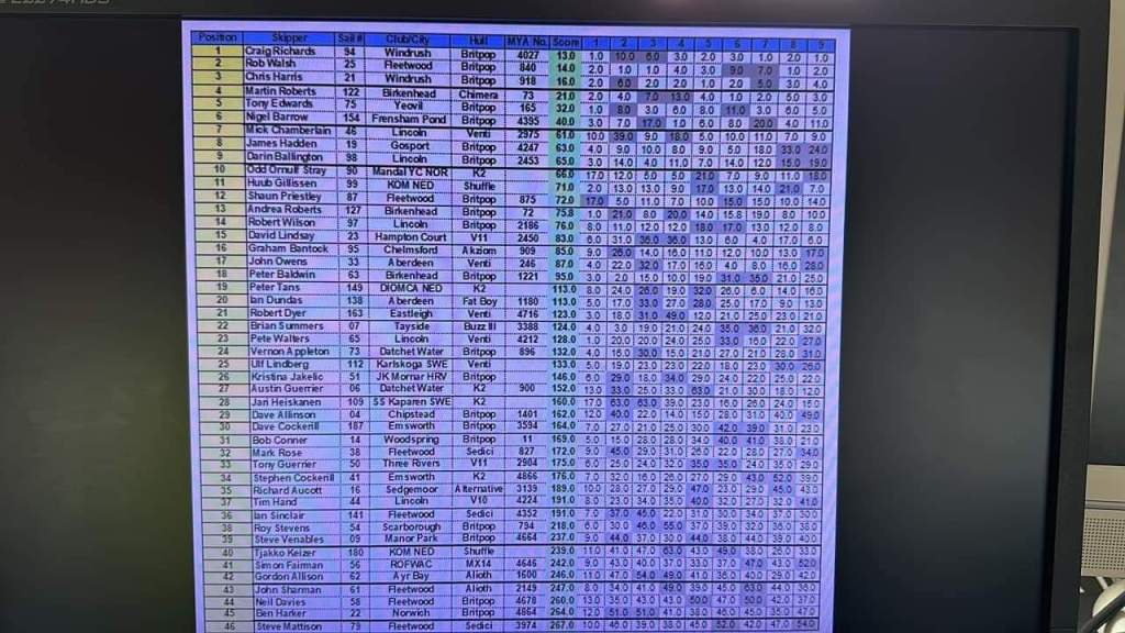 Day 2 report , sorry its missing But One of the Lincoln Skippers excelled and ended up after day 2 in 7th position , as you can see , he was 27th .