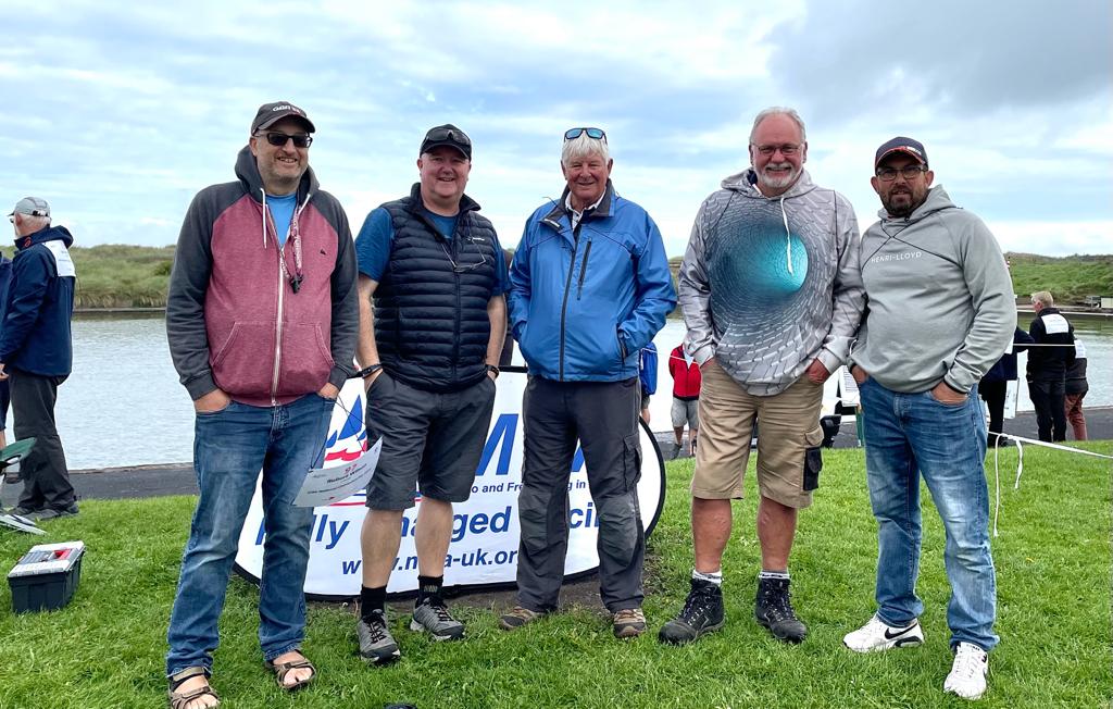 5 Lincoln Radio Sailing Club Members went to Race in the 2023 I.O.M National Championships. This is at the start and they are all smiling, !!