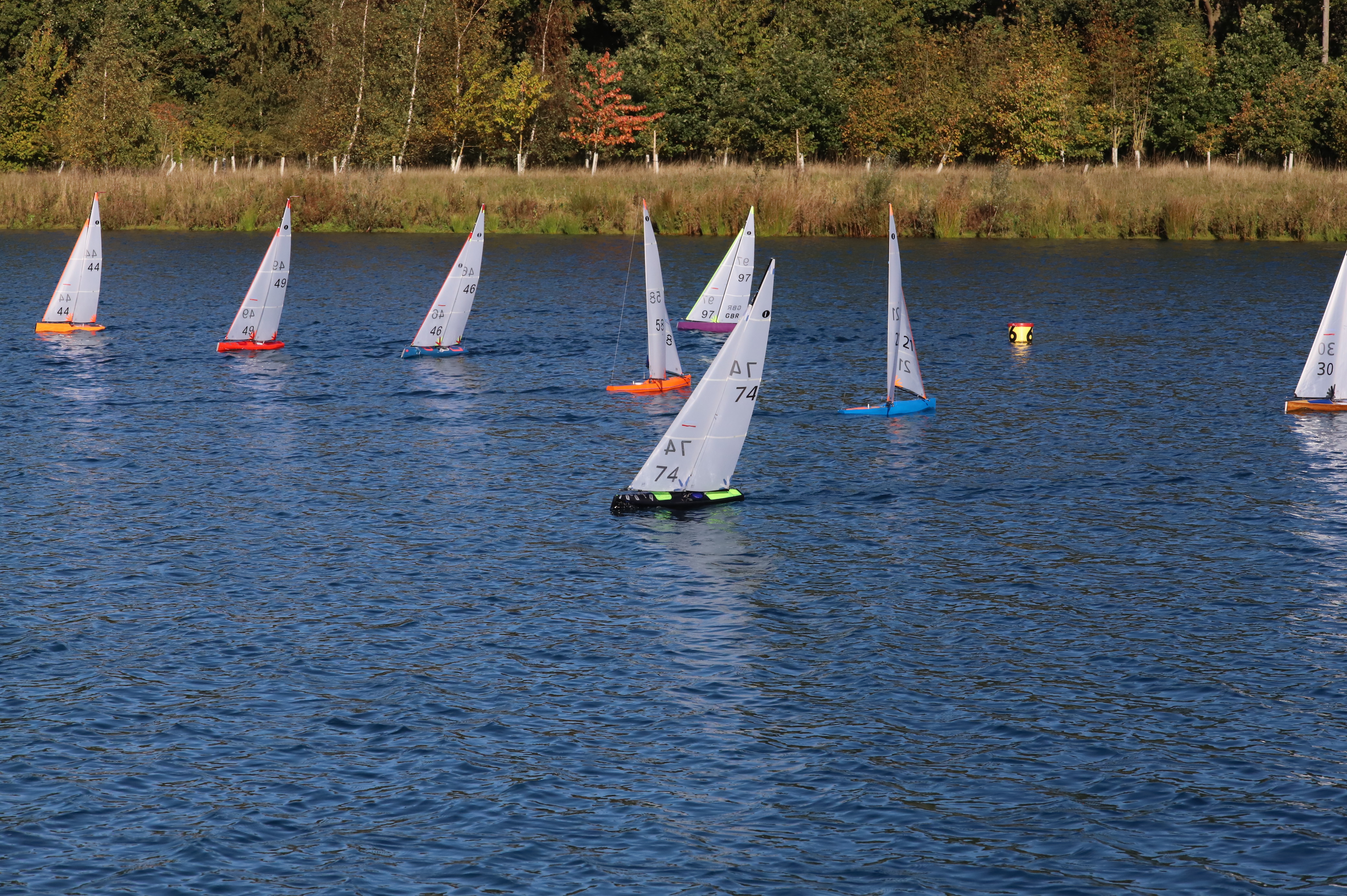 Great day of racing at Scotland farm , after all the rain over the previous two days, all was calm with sunshine a decent top suit breeze, 14 skippers in attendance, including fresh from the Europeans Rob W 97. Tim and Darin sorted out the race course, a good long beat and run , twice round and a final beat to the finish, Pete W 65 after having a whole load of winch trouble on the bank pre race finally sorted it and got it done just in time for the first race, which he duly took the bullet , Mick C 46 was not too far behind taking second spot with Tracey B 49r beating the old man, and taking third, and this was not the only time she risked a lift home !!!! . The course was perfect , bit shifty at time’s but it always is, and it is definitely there to catch you out, so you cannot take your eye of the floaty thing for a second. Race two saw Rob w 97 take top spot Tim H 44 second and Darin B 3 third, race was slightly marred by an incident that took two boats out , one with a broken boom , one with a disfigured lead, but no harm done, there would be a short talk on the Rules at the coffee break , lead by Darin, it seemed to centre on mark rounding, and I am not sure if total agreement was reached, but hey rules are rules, and the advantages to us club sailors is good .