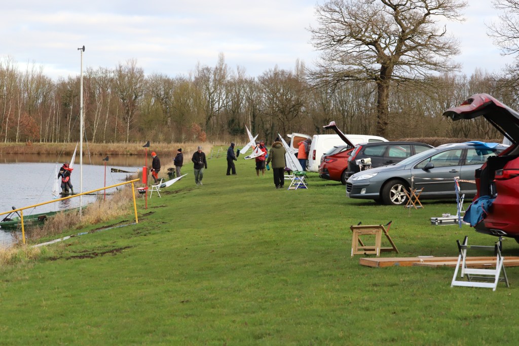 At last a break from the constant rain, but with a good, but light air forecast 12 skippers showed for what turned out some great racing, Micky boy and Kevin were down early to get things sorted, only 8 buoys left serviceable after the recent gales, but it was enough, racing was on the East bank, a slightly awkward direction making the weather mark a slight eyesight test for the old uns , but hey , a new Brit Pop was on show today with new sails, and it flew, wining the first three on the bounce, other skippers not really getting a look in, Rob W 97 sailing his Brit Pop ( don’t be fooled by the score sheet Fraktal it was not ) and he was well worth his second spot overall, racing was tight up and down the fleet especially the early races where the breeze coming out of the North was there to deceive the unwary. Chis E 74 took overall third spot. After the coffee break the breeze increased a couple of knots, and a gate was installed on the end of the downwind leg, it was all still very fluky, as is usual, but the young guns took the top three spaces, all with Brit Pops and so very well done to them, banter on the bank was great, and sailing/ racing was despite being very competitive carried out with respect for fellow skippers. Well done to Darin B for his win and to all who raced today .