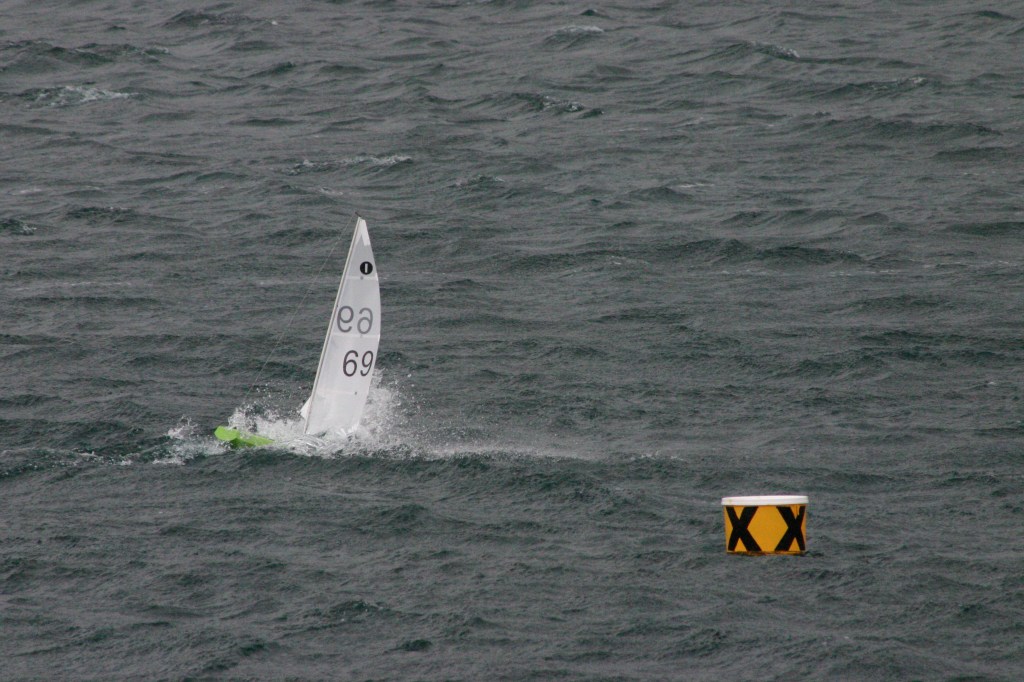 The day started with A rigs, but with some indicative gusts of what was to come. Darin showed the way round, taking the first win with Mick C behind him. Roger C was an early casualty with a rigging failure and was forced to use his B rig in race 2 which saw him at the front of the fleet in an increasing wind strength and only being edged out by Chris E and Darin B, with Chris taking the bullet.