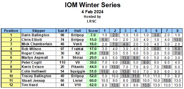 Just a couple of points re the score sheet Rob Wilson was sailing a Brit Pop not a Fraktal and Martyn Aspinall was sailing a Brit Pop not a shiraz , Tim had a few problems I believe rig wise and only did 4 out of the 8 races, The racing as Martyn said was fantastic and you needed to be there to get some adrenaline moving , this I am sure will be looked on as one of the great rounds of this Winter series.