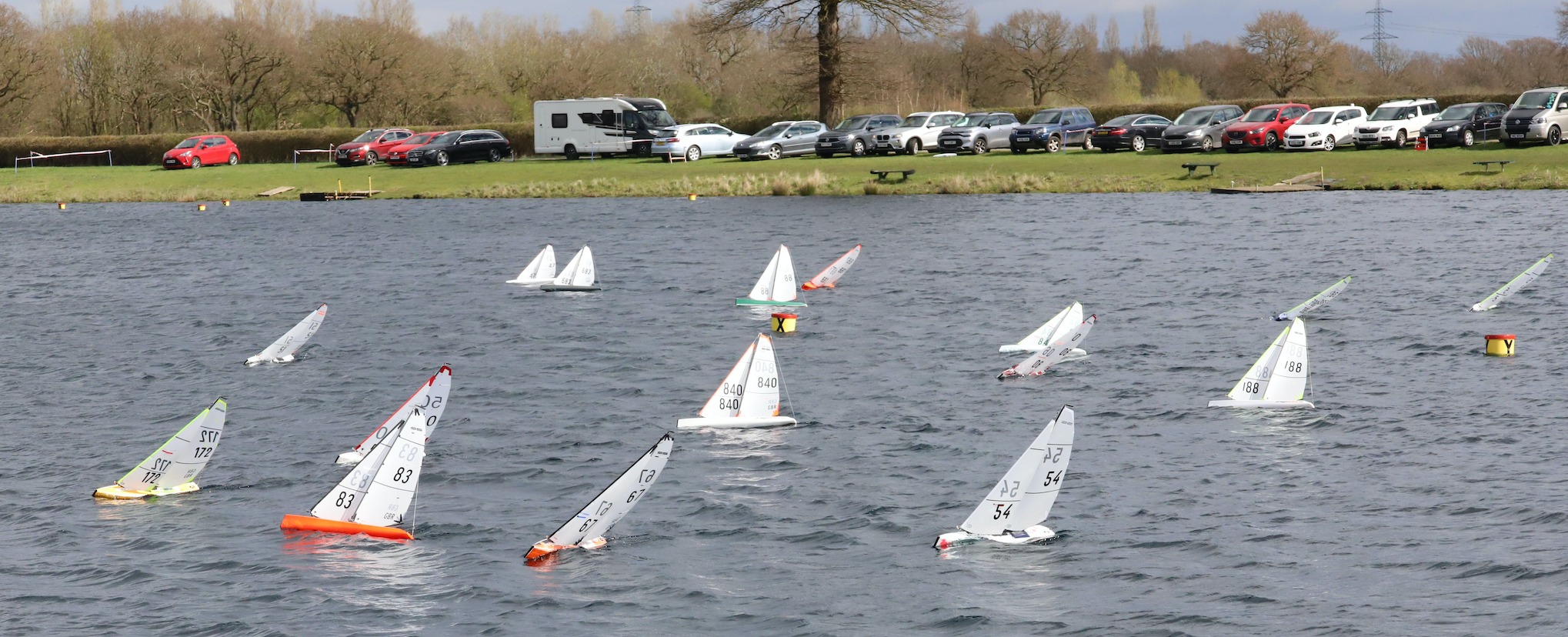 After the Briefing from Dave Rigby we got into the seeding races for the two heats. In the morning we all sailed on B rigs and there was a reasonably consistent wind down the lake with enough shifts to make life interesting. Despite the port bias line it paid to start towards the windward end of the line so you avoided the melee as boats tried to tack off the bank. The 13 to 23mph wind was forecast to drop after 4pm which would have worked out well, however the wind decided to switch off early in the A heat for race 5 and become extremely shifty. Get it right and you were a winner, get it wrong and the you were destined for the back of the fleet as the author can testify. The one bonus of the wind dropping was it allowed us all to warm up a bit. Standing in a constant cool wind is tiring and chilly however we enjoyed broken cloud and sunshine.