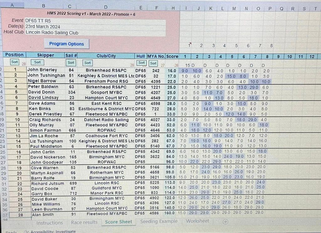 John Brierley dominated the afternoon with John Tushingham doing just enough to snatch second. Barrow faded to third overall and Peter Baldwin to 4th having suffered some winch issues in 2 races. David Donin completed the top 5.