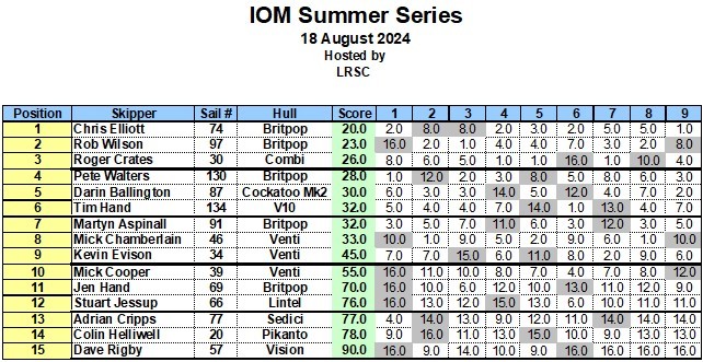 Wow what a fantastic mornings racing, 15 skippers on the start line, which started on the East bank but after one race we moved to the South bank , A few changes in boats sailed and you can see most , but Tim was racing his New Brit Pop that he will be racing in the Worlds in Australia in a couple of months alongside fellow skipper Rob Wilson, Tim H 134 was trying out his rigs as it was first time out but the boat showed a lot of promise, A welcome back to the fray for Chris E 74 after a bit of a layoff and proved he has not lost his touch. the First race was won by Pete W using his Brit Pop for a change and it certainly went well. Mick C 46 took the second race by a country mile, but his races were so inconsistent that he was neve going to be in the running. The racing was superb with two good long beat and runs and a final beat to the finish, race three and Rob W 97, took the win and then the next two races were won by Roger C 30 in fine style. The fleet was hot and battles were going on all though, with the breeze gradually picking up as the morning wore on, but you got to take your hat off to Chris, he was on fire and was very consistent, Rob w 97 will be happy with his mornings work, as will Roger C 30, It was certainly BP dominance today with 5 Brit Pops in the top ten, Not sure what happened to the Venti charge but it just did not happen. Very well done to Chris for the win , don’t stay away to long in the future, and of course to all who competed, it was a great mornings racing, and I am sure we all enjoyed it .