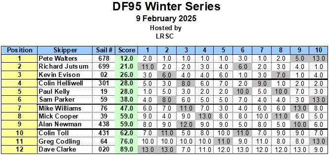 Paul Kelly made the most of the trying conditions to take the first race closely followed by Pete Walters. Race two saw the start of the domination by Pete W taking the next four wins followed with a 3rd 1st 2nd.