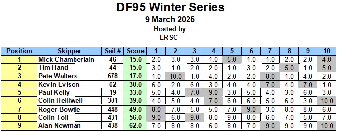 Tim ends up the Winter series Winner, congratulation’s to him, and all skippers for taking part .