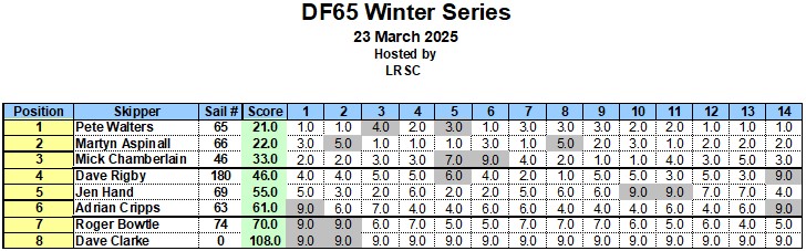 Here are the final standings for the Winter Series – congratulations to Pete Waters!