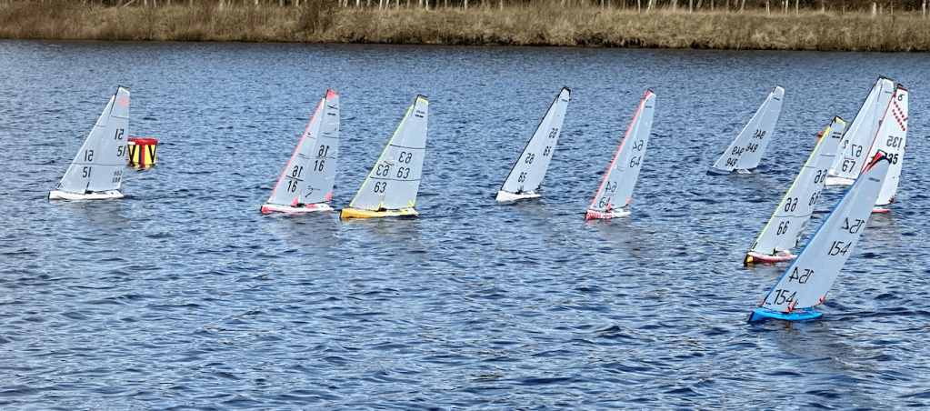 The DF 65 is one of the smallest radio sailing boats, produced in China and shipped all over the world. It is a marvellous design and has spawned many clubs and sparked interest in radio sailing across the globe. Rumour has it, the numbers sold are in the tens of thousands. The boat comes in a box, is simple to rig and only a few hundred pounds to put on the water. There are four rigs. A light weather rig called the A+ for conditions up to 10mph, a slightly smaller A rig which has a very narrow wind band of a few miles an hour, then a smaller B rig for 12-18mph and a C rig for windier conditions. Interchanging the rigs can be done in seconds.