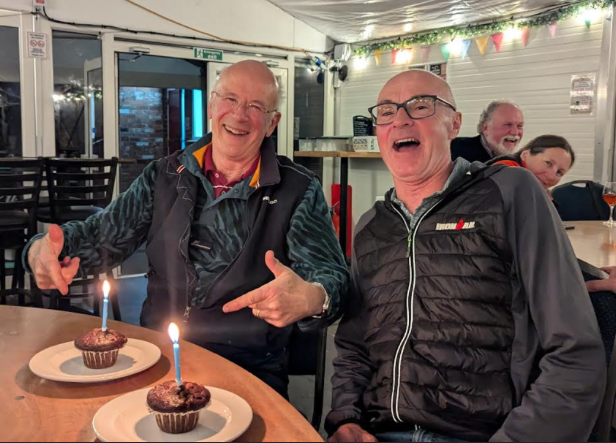 On Saturday night we all went to the Railway Inn for dinner of excellent pies containing either chicken, steak or veggie with crispy chips and peas. Quality food, hot and tasty. Two competitors shared their birthdays, Nigel Barrow and Paul Plested so they were each given cake and card and all sang happy birthday.